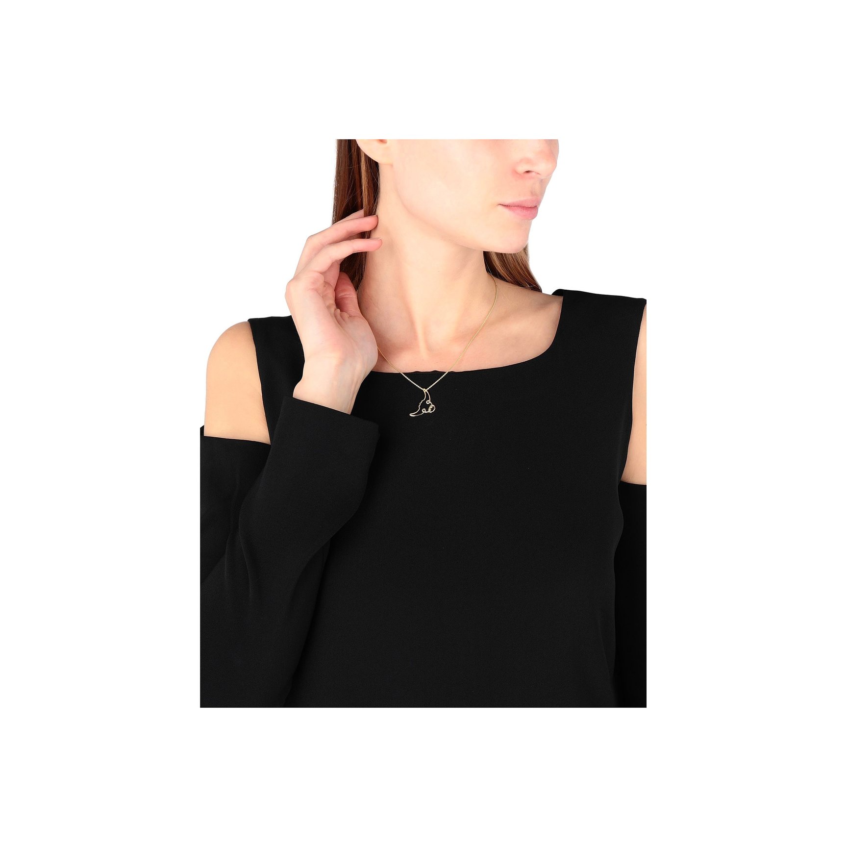 「ニナ・カステンス(NINA KASTENS)」のネックレスは、牛の頭をシンプルなラインで描いたモチーフ付き。シンプルなブラックトップスのアクセントにも最適。