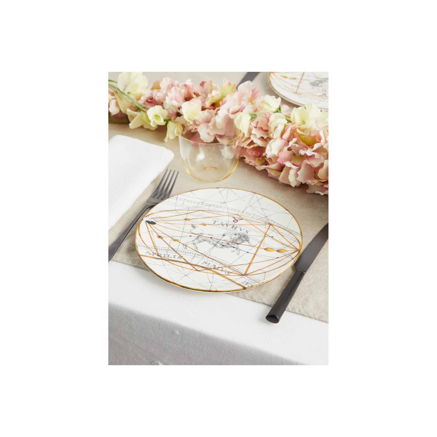 元「グッチ(GUCCI)」のデザイナーによる「ゲルゲイ アーデイ(Gergei Erdei)」のリネン製プレースマットの2枚セット。古代ローマ神話から着想を得た牡牛座モチーフが食卓の雰囲気をぱっと明るくしてくれそう。