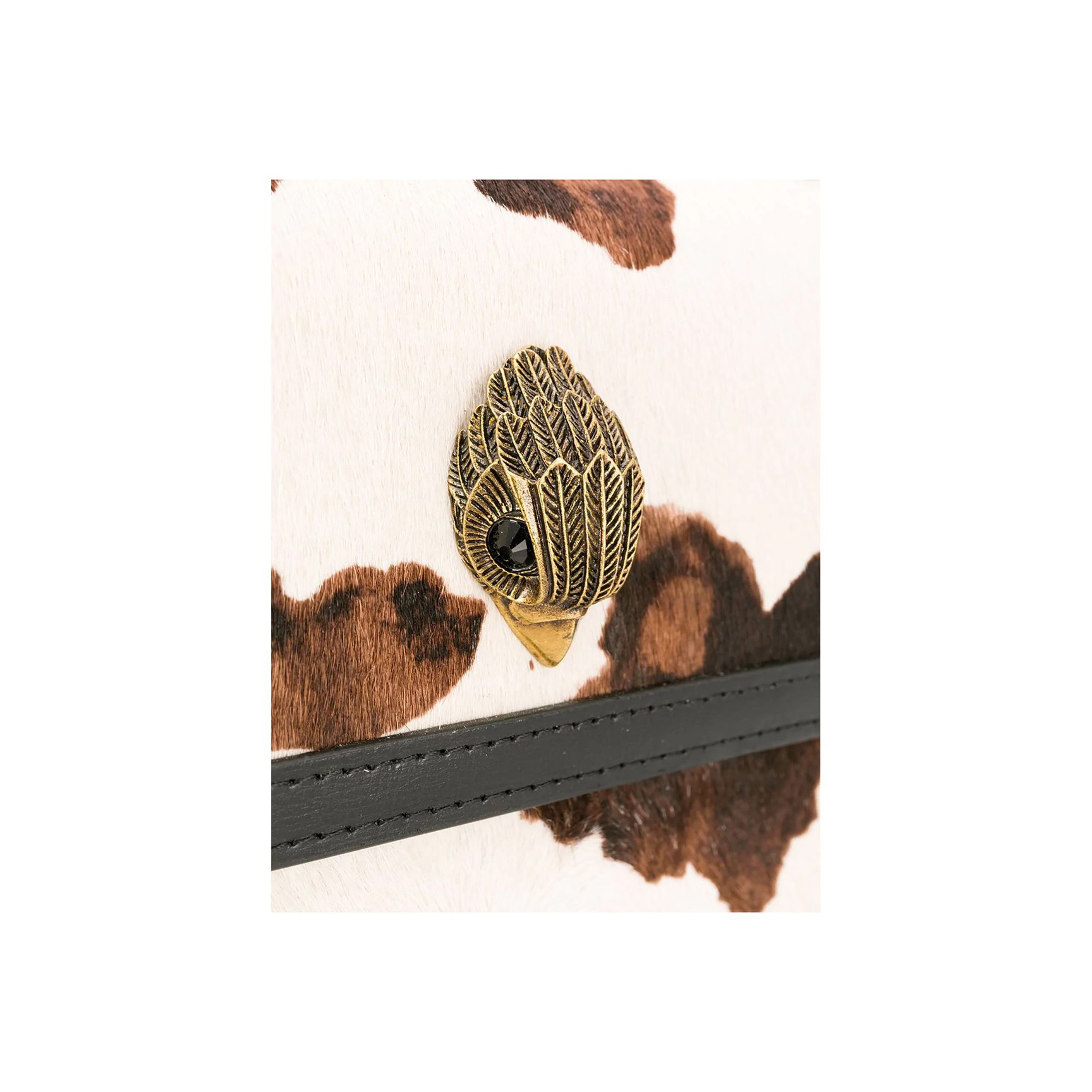「カート ジェイガー ロンドン(Kurt Geiger London)」のボックスショルダーバッグは、カーフスヘア素材の毛並み感も楽しめます。メタルクラスプは、なんとイーグルヘッドを模したデザインに。