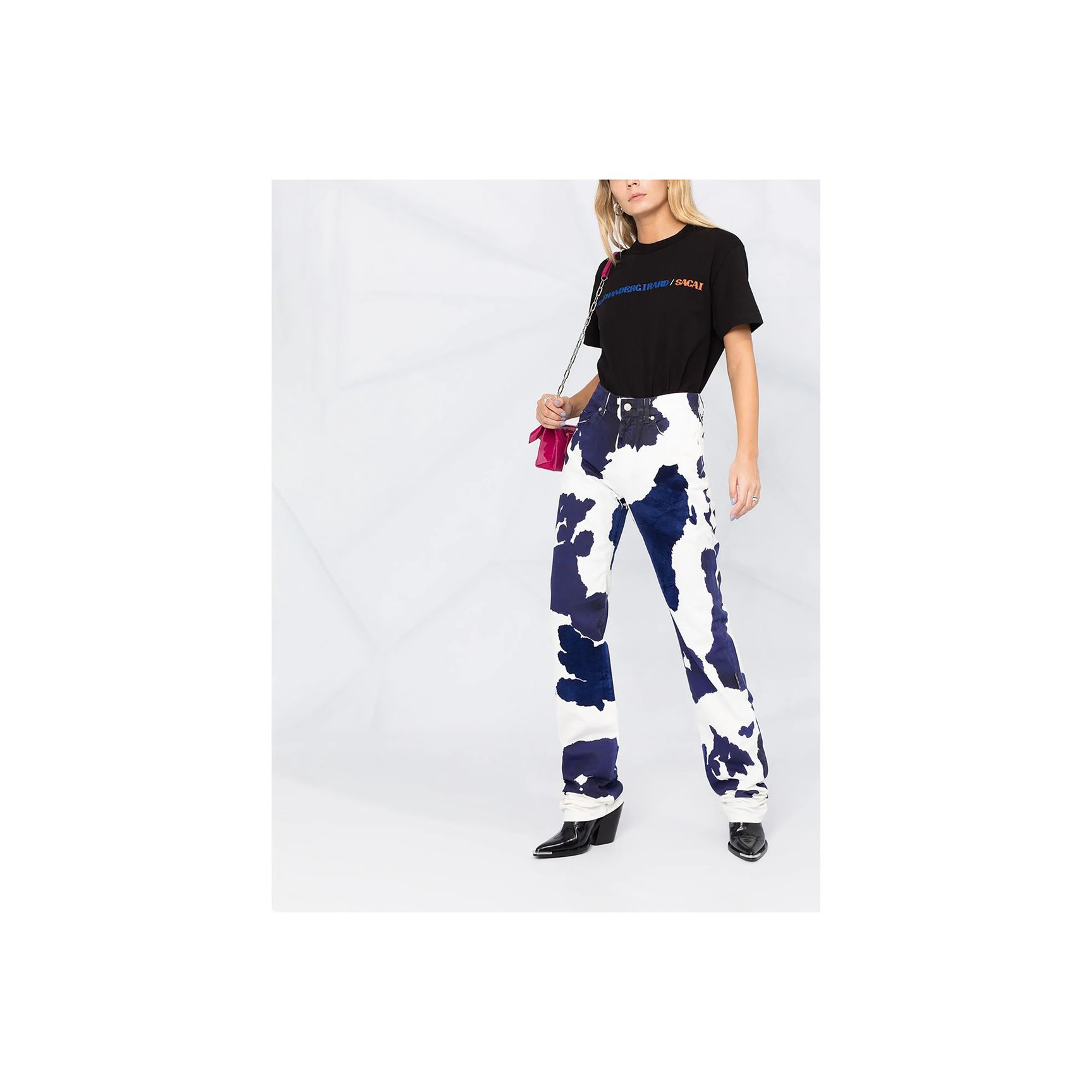 「オフ-ホワイト c/o ヴァージル アブロー™(OFF-WHITE c/o VIRGIL ABLOH™)」のストレートジーンズは、ややリラックスフィットのハイウエスト。ポインテッドトゥブーツと合わせて、モダンなカウガールスタイルに挑戦!