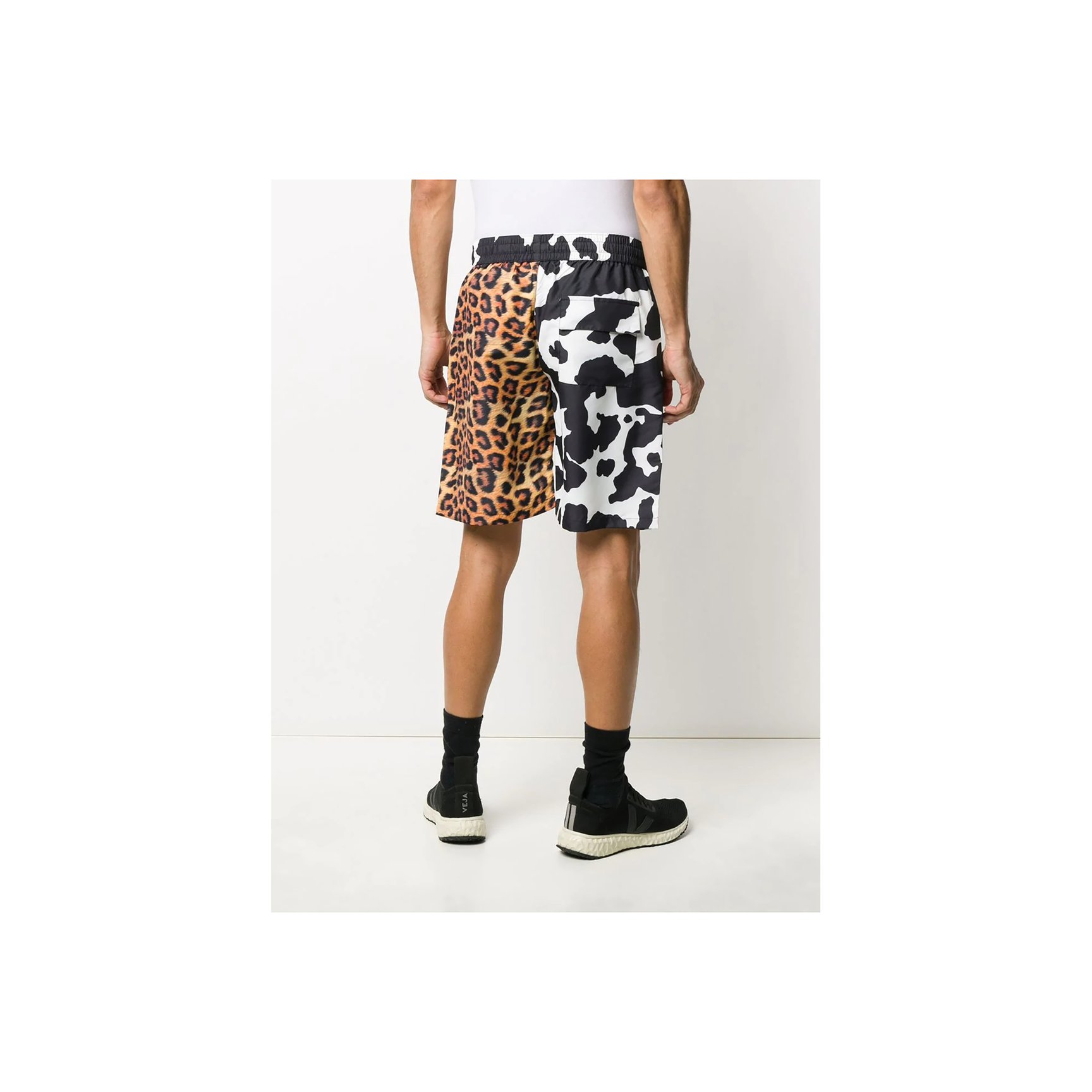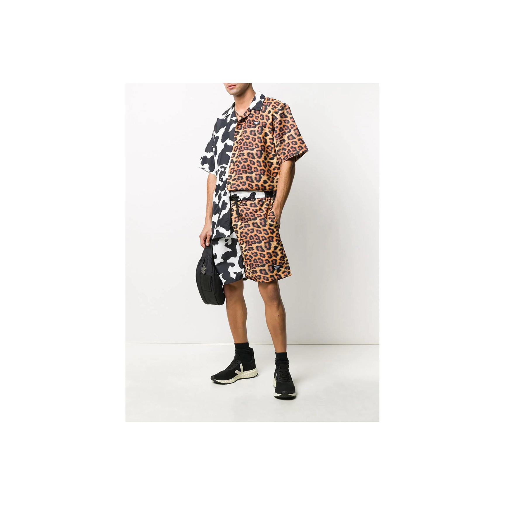 「チャイナタウン マーケット(Chinatown Market)」ショートパンツは、カウとレオパードのハーフ&ハーフスタイルが唯一無二の個性派。カジュアルなスタイルにエッジをプラスしています。
