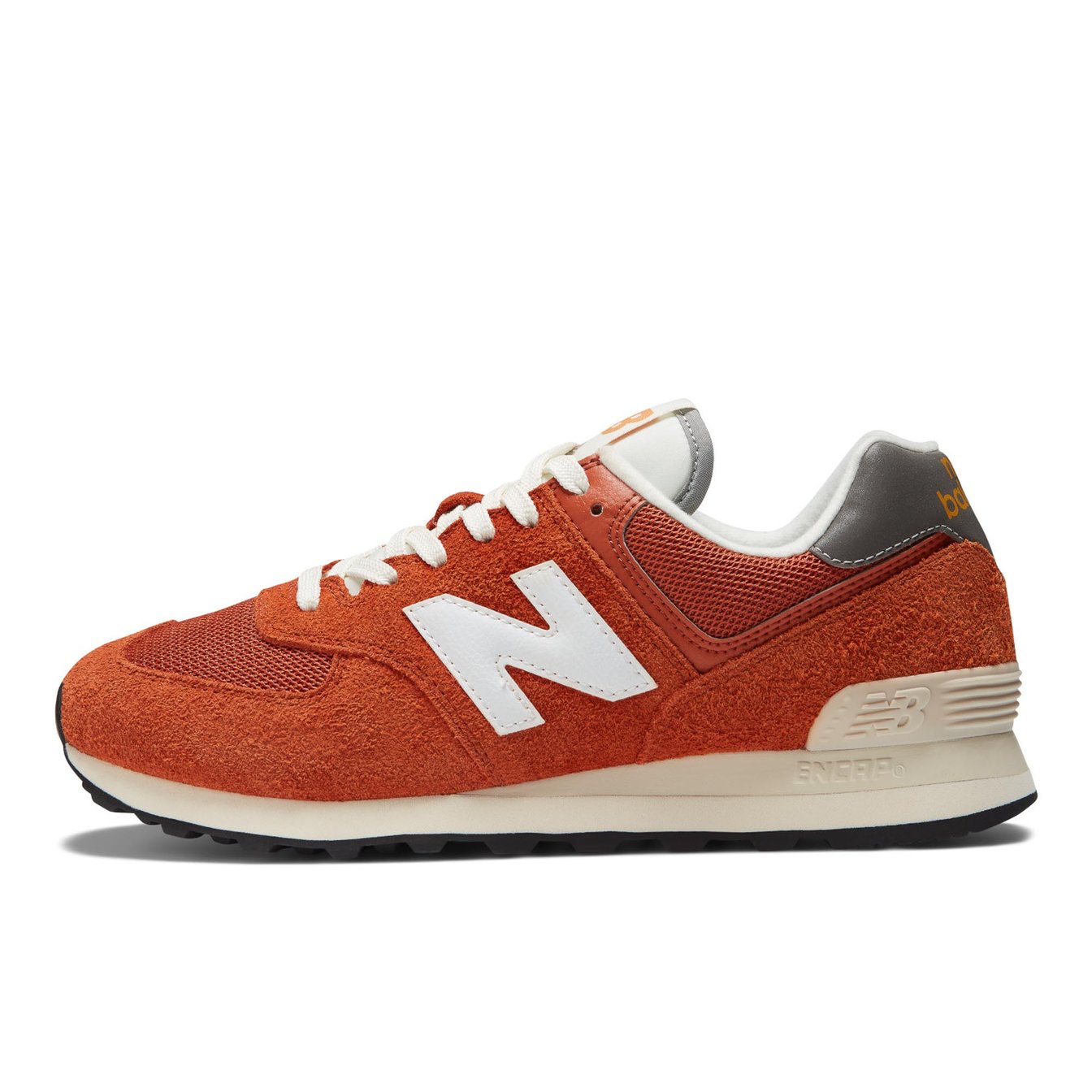 風合いのあるヘアリースエードのアッパーが特徴の「U574」。ゆったりとしたスウェットパンツを合わせてもカジュアルになりすぎない上品さがあります。
