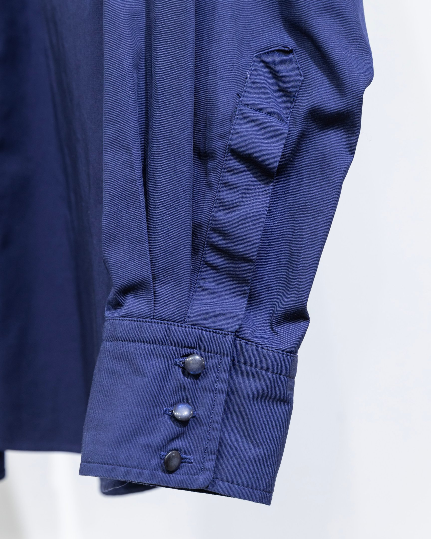「小学生の頃、ボーイスカウトに所属していたのですが、幼いながらもボーイスカウトシャツに対して愛らしさを感じていました。過去に古着で流行り出した時期も、懐かしさのあまり購入して着用しましたが、やはり"ボーイ"なのでサイズが小さいわけです。大人が着られるボーイスカウトシャツが欲しくてこのシャツを作りました」