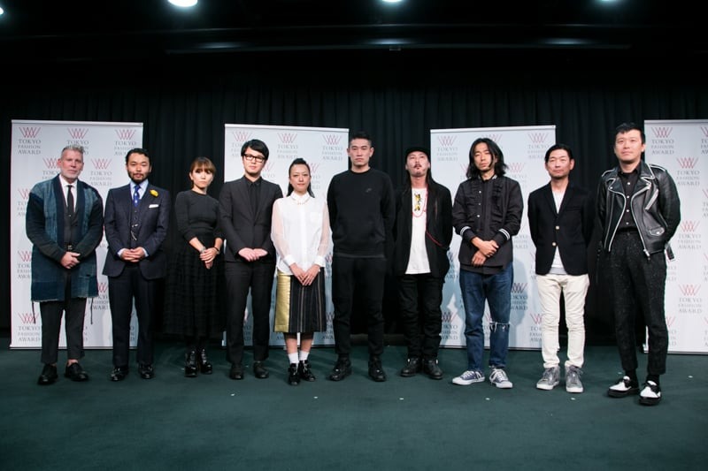 TOKYO FASHION AWARD 2014年の受賞者。授賞式に出席したデザイナー(右から5名)と審査員(左から5名)