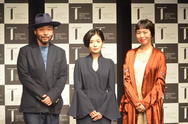 FASHION PRIZE TOKYO 2017年の様子。左から小木 "Poggy" 基史(「ユナイテッドアローズ&サンズ」ディレクター)、黒河内真衣子(マメのデザイナー)、長尾悦美(髙島屋MD本部レディースファッションディビジョンバイヤー)