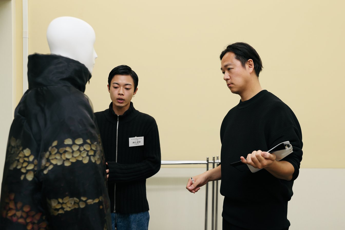 今年は約2300件の応募が集まり、書類選考を通過した60人が二次審査に進んだ。選出者は、ブランドビジネスを成り立たせ、世界で活躍するためのワークショップへの参加を経て、デザイン画に沿った1ルックを製作。12月中旬、新宿某所で行われた選考会に臨んだ。二次審査では、デザイン性、機能性、新規性(伝統の継承と革新)、市場性、サステナビリティへの対応、将来性の6項目を元に、各アワードの2部門からそれぞれ6人ずつが選ばれた。