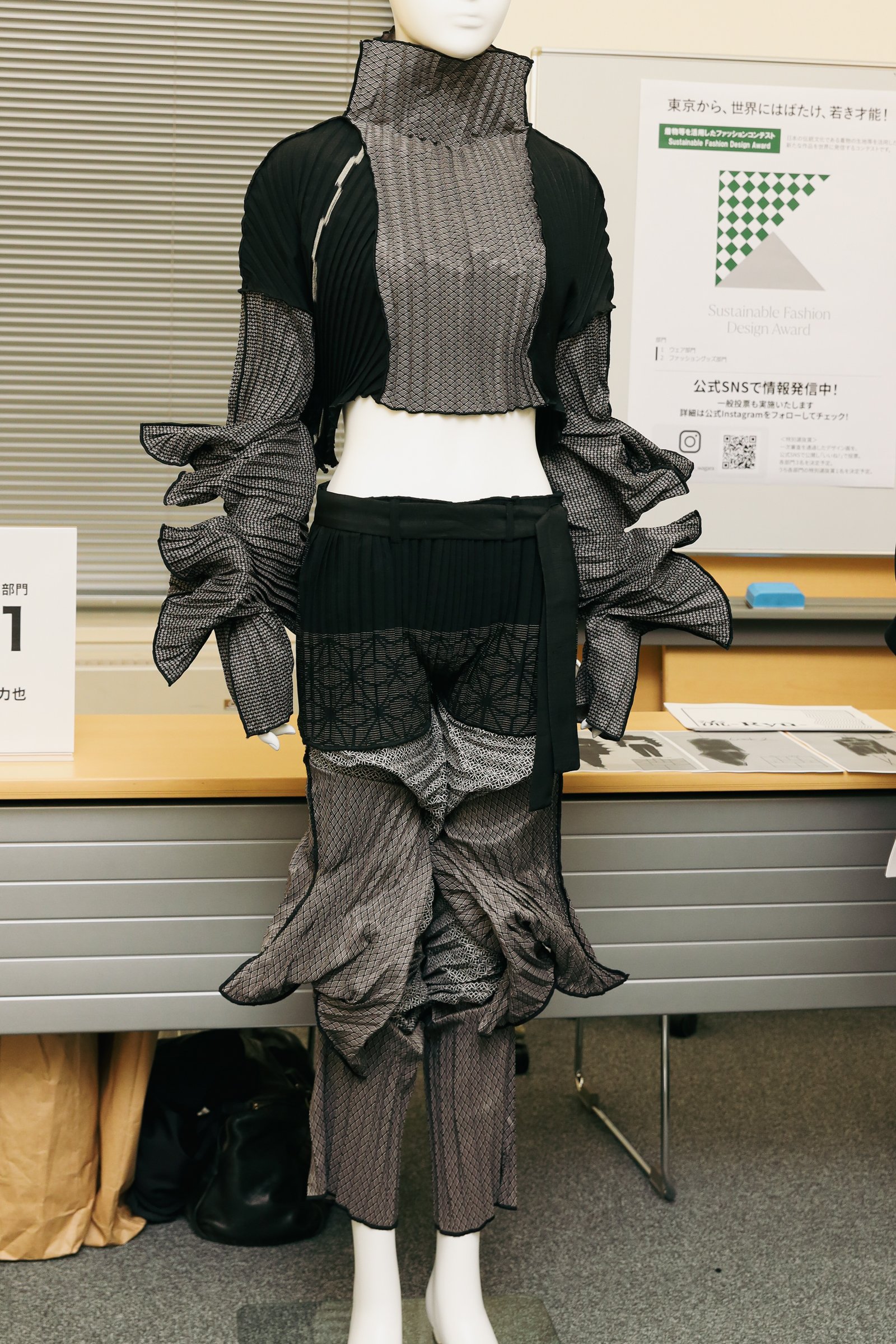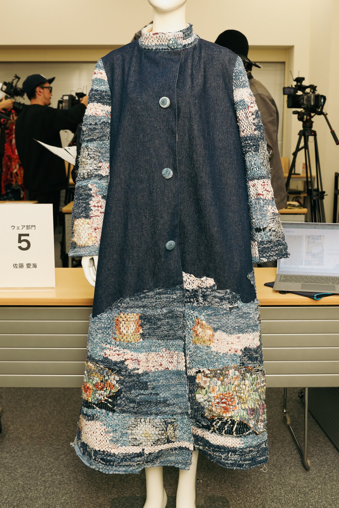 「サンプルがどこまでデザイン画を再現できているか」を注視したという志鎌は、江戸時代の寒さから身を守る衣類を作っていた技法を用いて、独自のテキスタイルを使用し、日本の「もったいない」を表現した東京モード学園 佐藤愛海の作品について「マテリアルで圧勝した感がある。裂き織りの生地を使ってよりファッション感度の高い1着に昇華できたら、海外でも評価される唯一無二の存在になれる」と評価。
