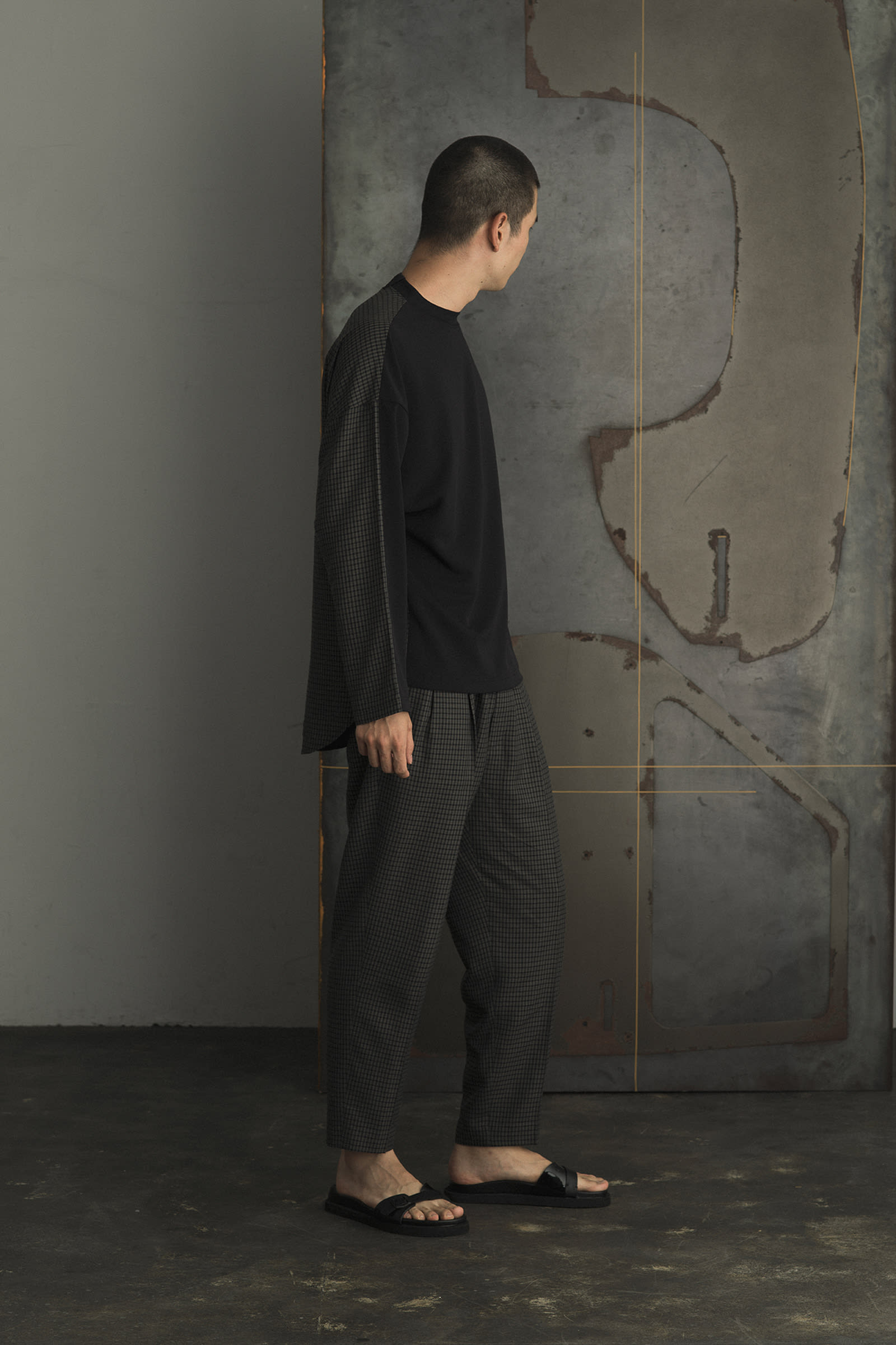今回デジタル映像で発表したのは、通常のコレクションラインではなく、ミリタリーウェアをソースにワードローブとして提案している「N.HOOLYWOOD TEST PRODUCT EXCHANGE SERVICE(エヌハリウッド テスト プロダクト エクスチェンジ サービス、以下NHTPES)」。今の環境や自然な感覚に委ね、尾花自身や周りのスタッフが本当に着たい、本当に面白いと思うものを探究していくプロセスで制作したという。