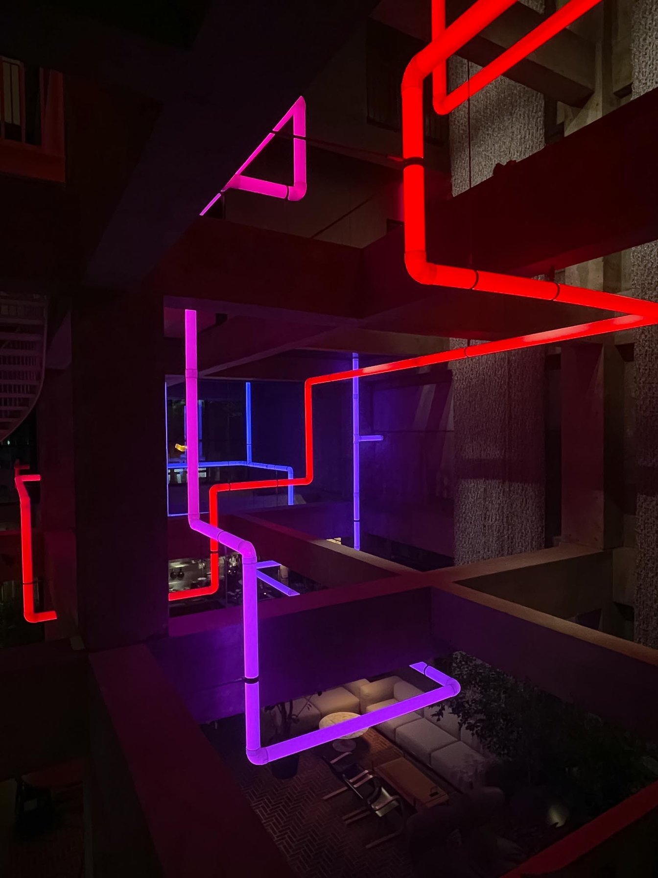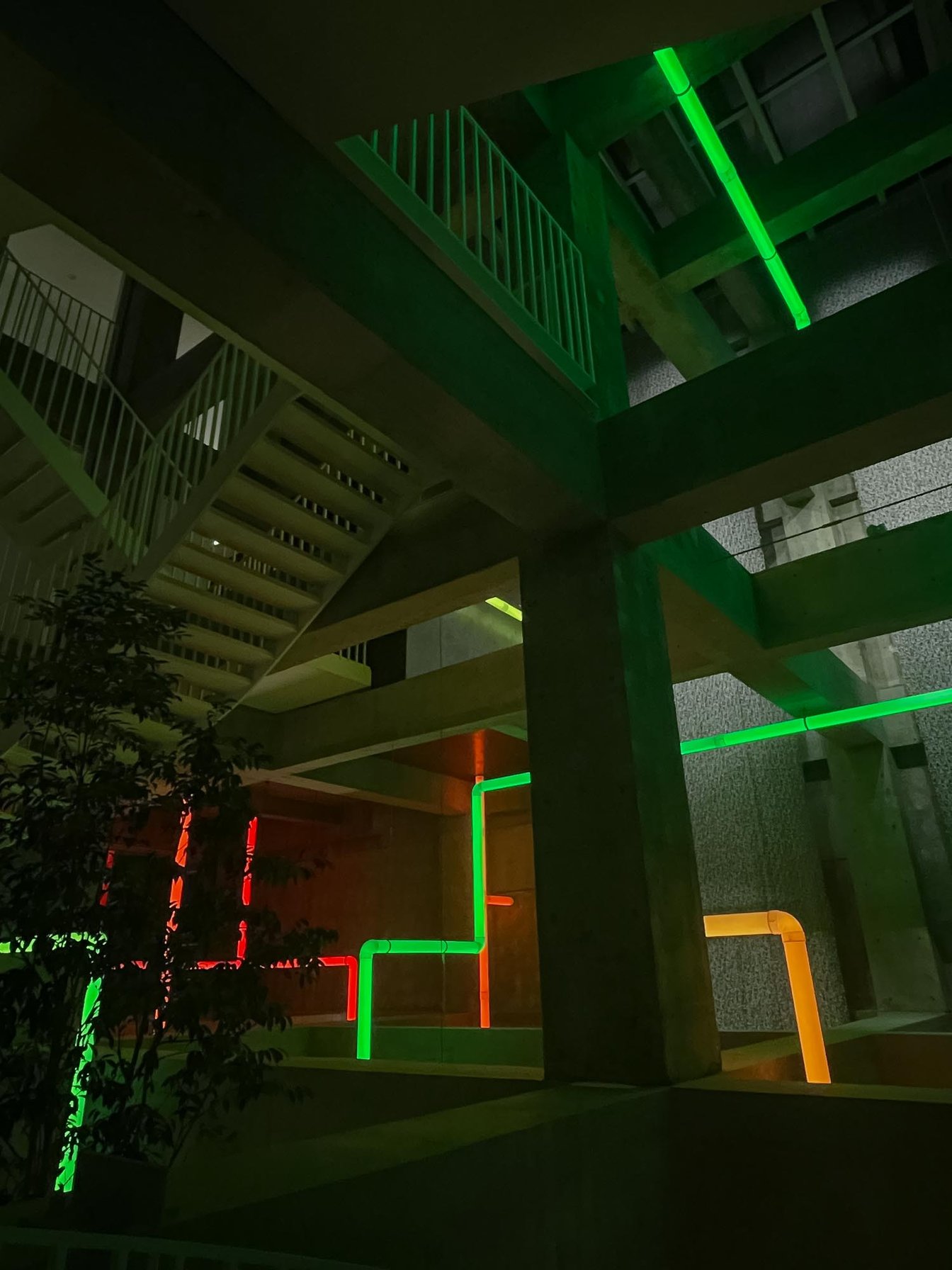 夜はレアンドロ・エルリッヒ氏の「Lighting Pipes」が七色に彩られていました。昼間見た風景とは違ってこちらも素敵でした。