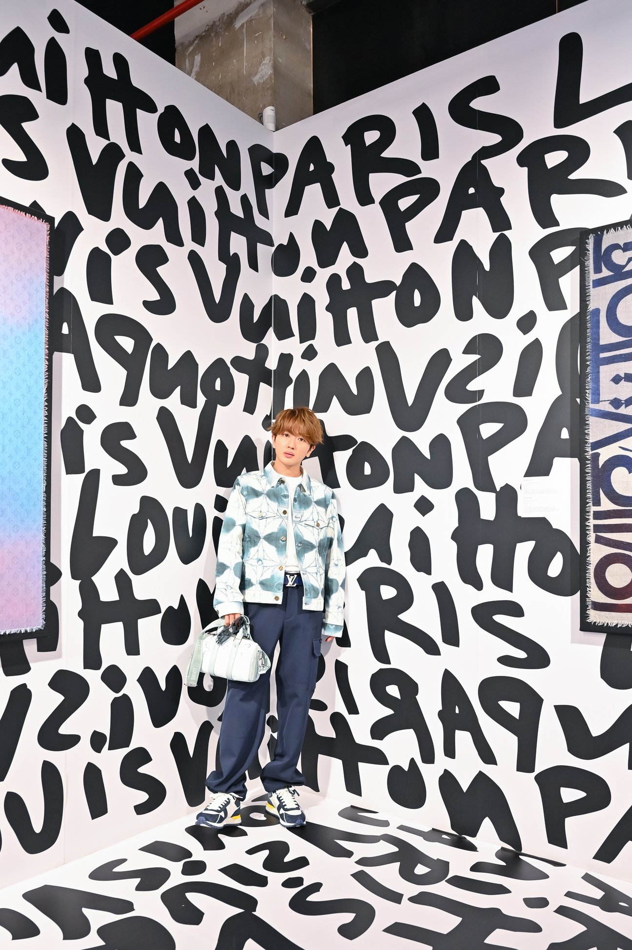 夜に予定されているショーに向けて、出発の時間が近づいてきました。この日のNissyの装いは、秋冬の新作のモノグラムデニムワークウエアジャケットに爽やかなホワイトパンツ、足元はLVレンジャー・ライン アンクルブーツ。そして鮮やかなタイダイが描かれたグラフィックが目を引くバッグ、キーポル・バンドリエール25を手に。ホテルのエントランスを出ると、沿道に集まっていたファンらの歓声が響き渡りました。