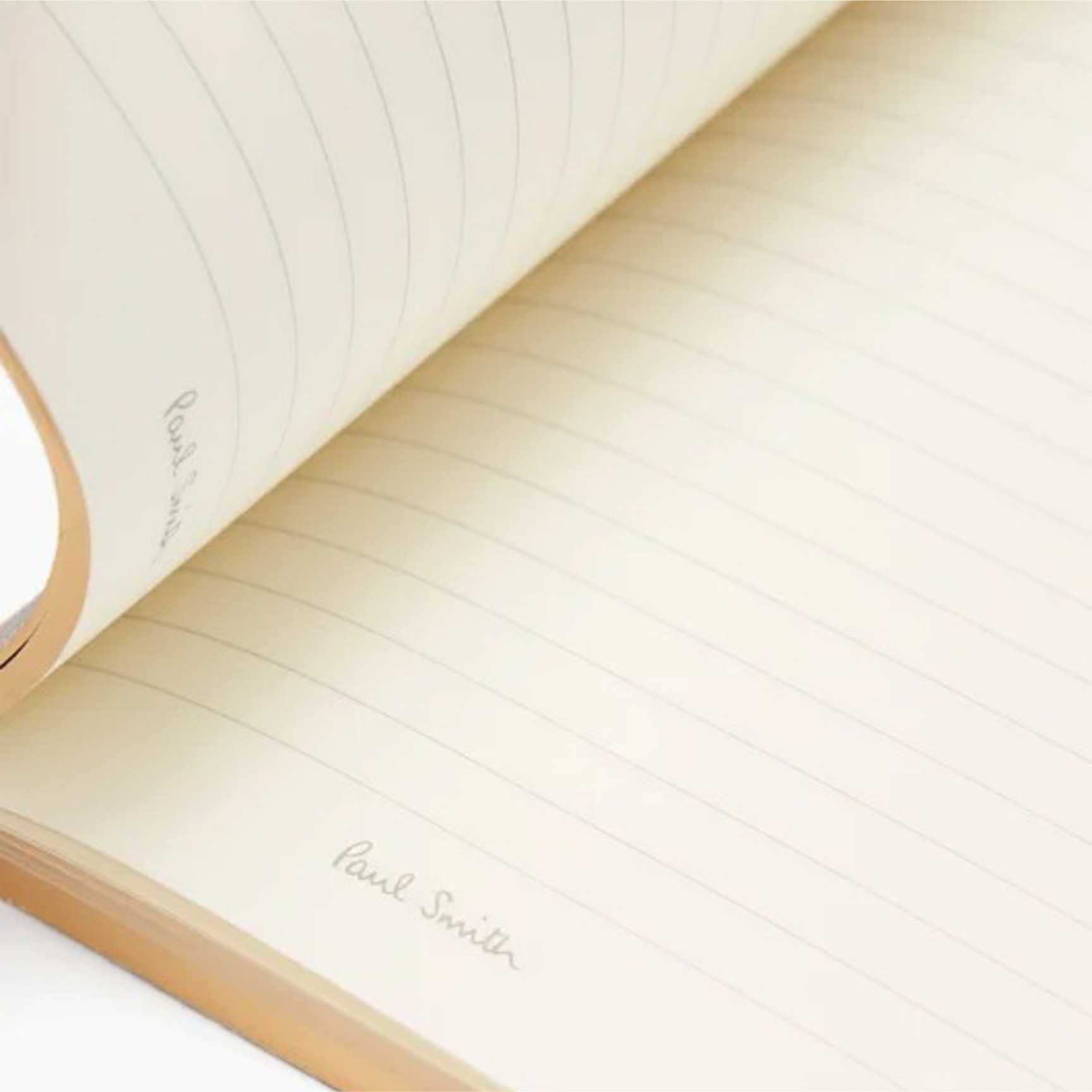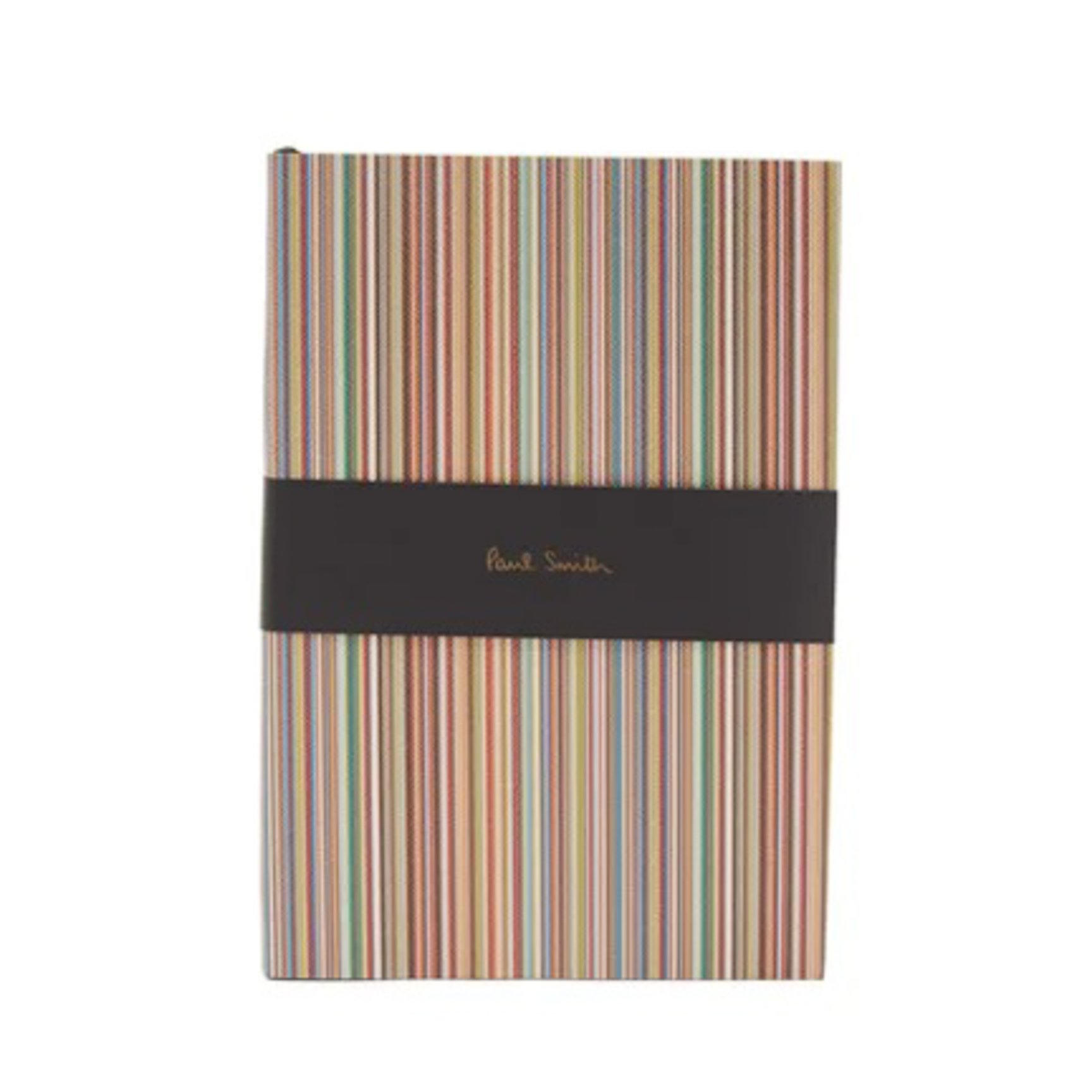 「ポール・スミス(Paul Smith)」のシグネチャー、マルチストライプがおしゃれな罫線入りノート。たっぷりと書き留められる、約14.5 cm x 21 cm(サイズ感 A5)の大きさで学びやオフィスワークにもぴったりです。見せる収納や、インテリアとして飾っても◎。