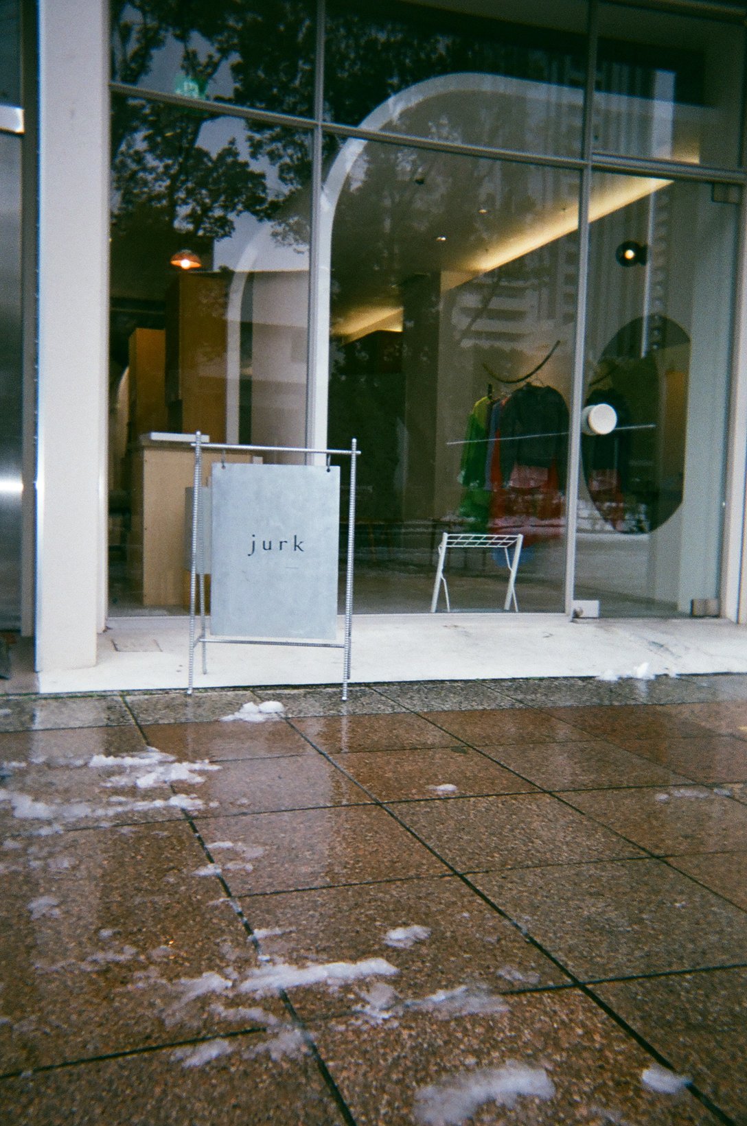 2019年にオープンした名古屋のjurk。全面ガラス張りのおしゃれな店構え。雪が降ったある日