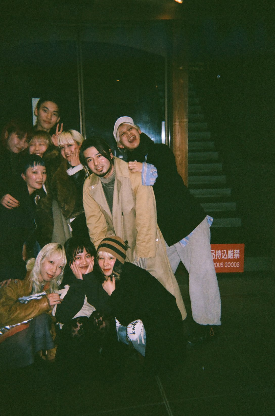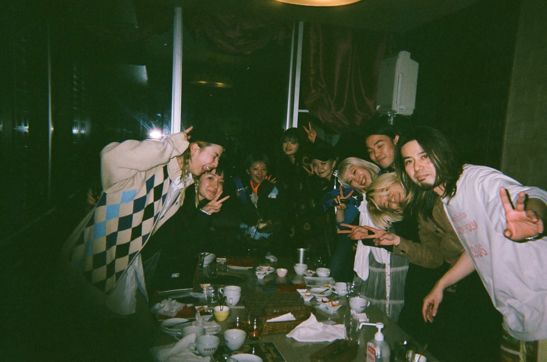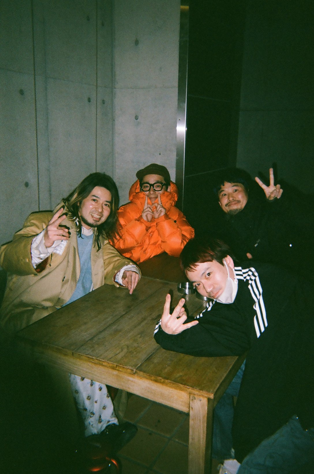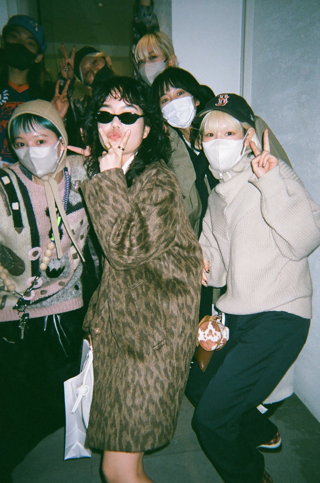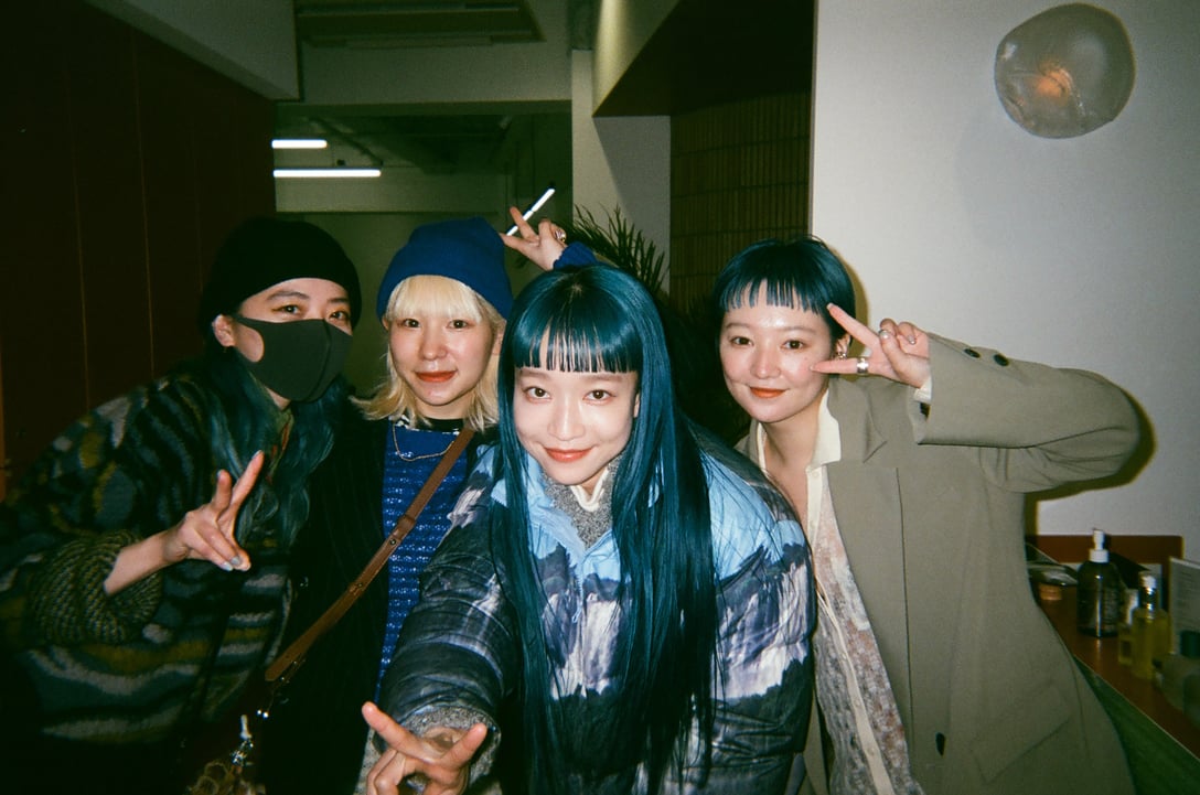 モデルのタカハシマイさん(中央右)が来店したときの一枚。店長兼ディレクターのYOUさん(左)、プレス兼バイヤーの新美さん(右)、バイヤー兼アパレルショップの店長さくちゃん(中央左)