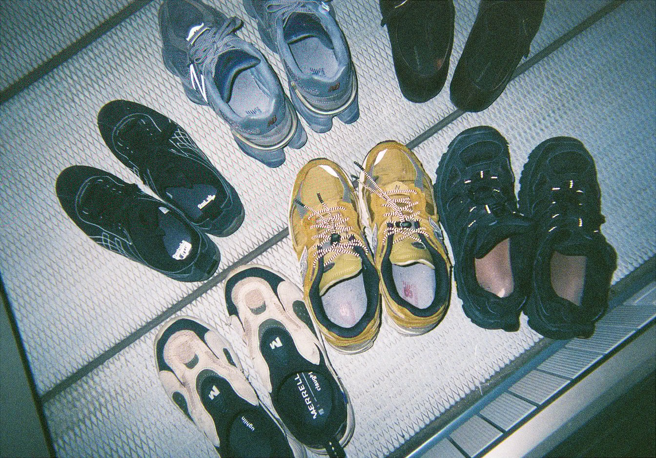 好きですね。いろいろ持っていますが、サロンワーク中は動きやすさを重視したいので、スニーカーがいちばん好きです。下段の右側に写っている黒いスニーカーと左下のベージュのスニーカーは、「メレル(MERRELL)」という登山ブランドです。すごく履きやすくて、お気に入り。この登山靴で山に登ったこともあります。