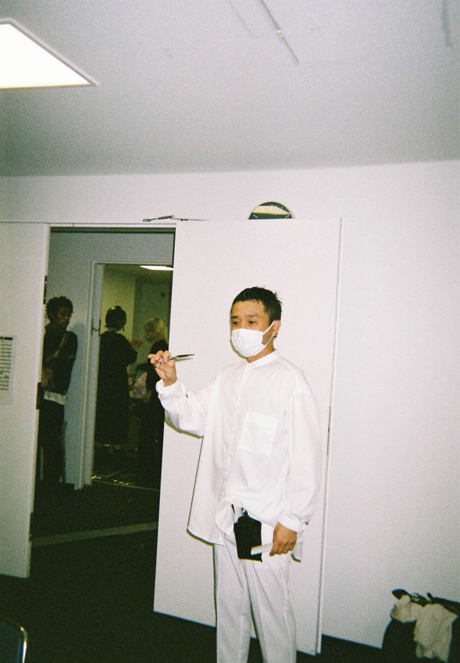 ステージはカキモトアームズのクリエイティブを担う、トップスタイリストの小林(小林知弘・チーフデザイナー)、カラーリストの熊倉(熊倉正和・銀座二丁目店店長)と福田(福田唯菜・六本木ヒルズ店トップカラーリスト)、メイクは飯田(飯田麻衣六本木ヒルズ店店長)が担当します。小林は真面目で職人気質、パフォーマーだなと思っています。ステージでモデルに向き合う姿は侍のようで、ほかの美容師さんからは感じることのない、一球入魂のような思いが伝わってくるので、見る人を惹きつけます。