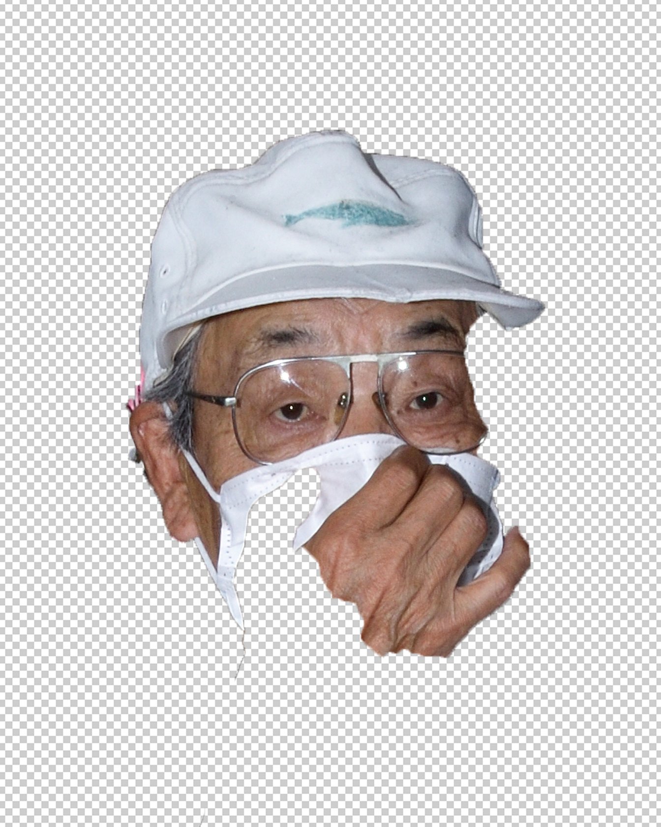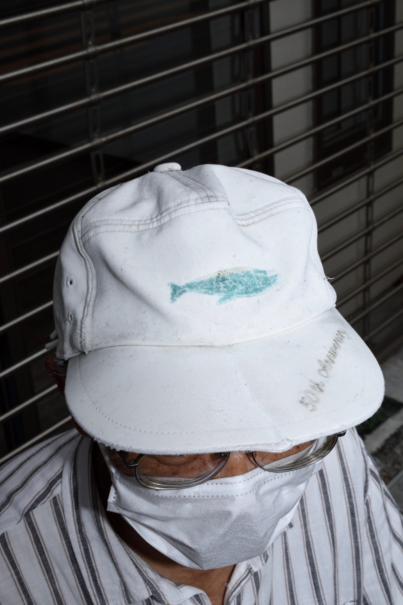 YZYな人:ああ、これクジラのワッペンがついとったんやけど、取れたからその上から色塗ったの。お店が移転した時から被ってるから、もう17年くらい被ってるかな。