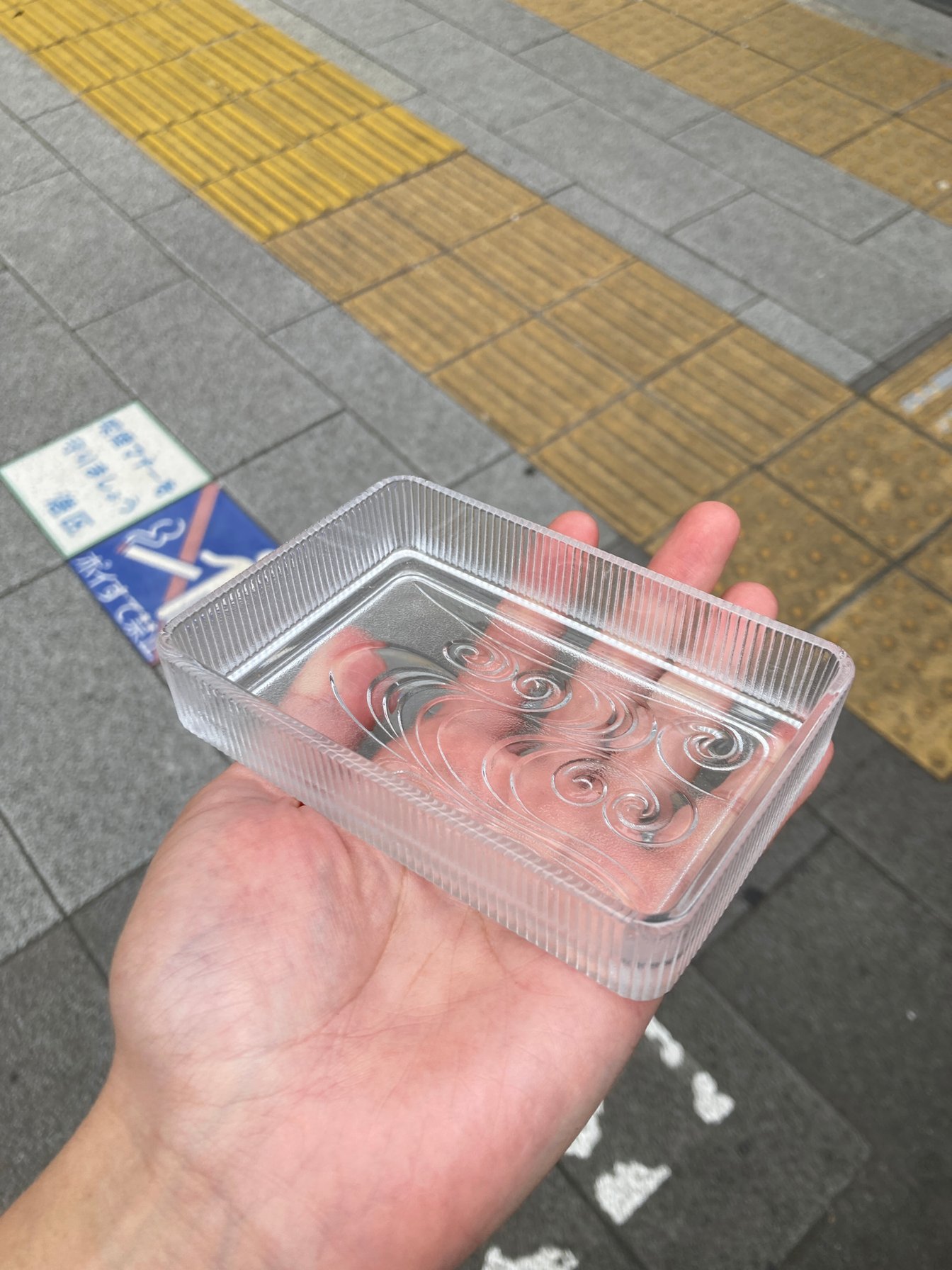 最後に写真を撮らせてもらい、ぼくはガラス製の小皿を購入した。陶苑でガラス製品を買うのは無風流だとは思ったが、夥しい陶器の中にこぢんまりと積まれたガラス小皿は、妙な魅力を放っていた。ガラス製品は不人気なのか、値札がない。