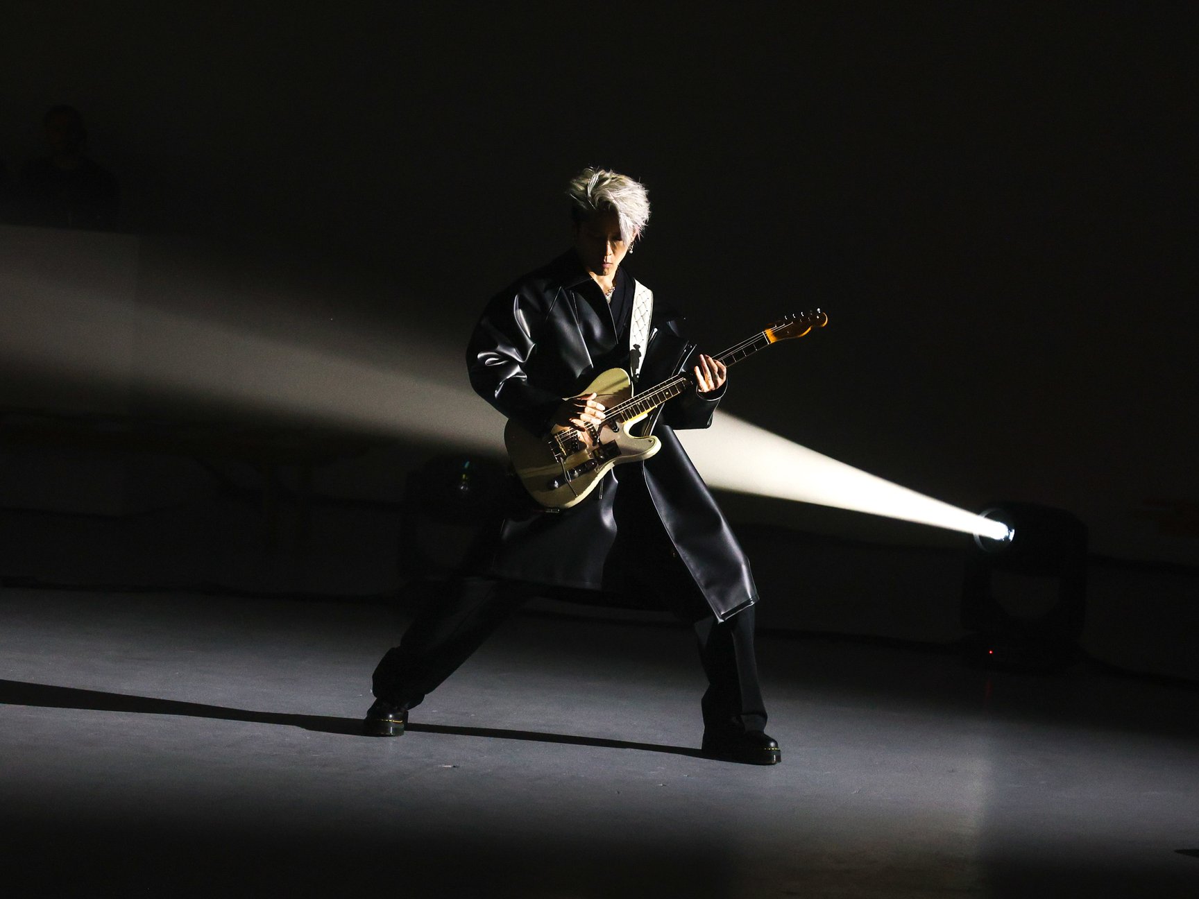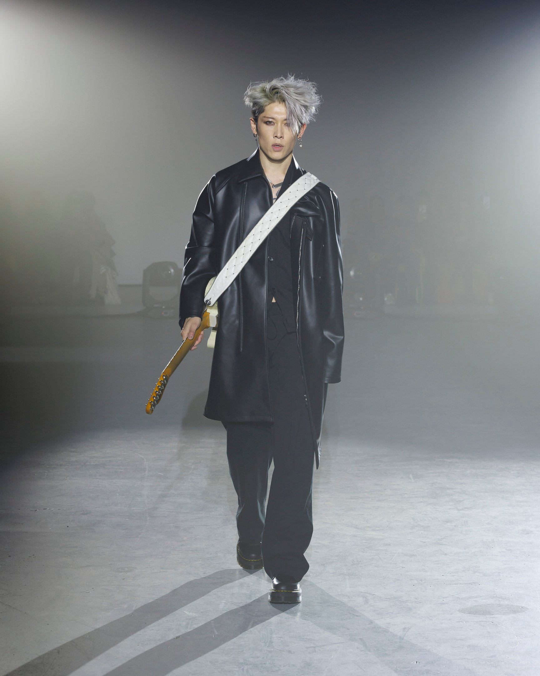 ショーの終盤に登場したのは「サムライギタリスト」の異名を持つMIYAVI。ギターのソロ演奏を披露したほか、スペシャルゲストとしてランウェイを歩いた。身長185cmのMIYAVIだが、SNSで「ここでは小さい方。みんなでっかい!」とモデル体験を振り返ったほか、バックステージでの様子もツイートした。