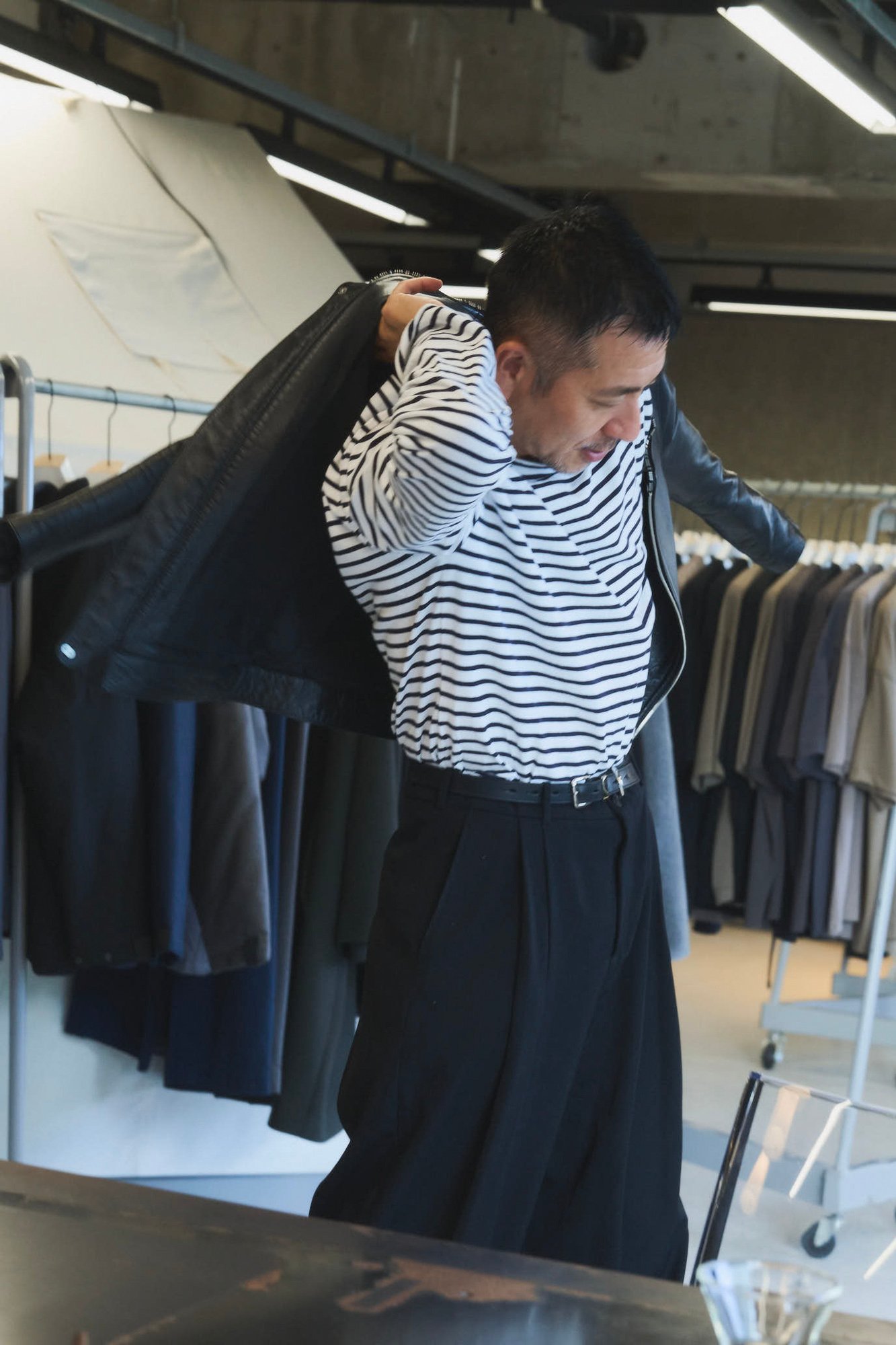 実際にバッシングを受けたことはないですけど、海外の価値観には宗教的・人種的なものが複合されているので大変ではあります。自分の信念として「美しい」と思っているものと、バイヤーや買ってくれる人の信念がずれる時があるんですよね。だから、例えば「レザーアイテムを展開するなんて、動物を殺しているんですか?」とメディアなどで攻撃された時に「食肉の副産物」ということを知らないから閉口してしまうし、たとえ知っていたとしてもヴィーガンの人にそれを言われたら何も言えなくなっちゃう。そもそも「そんなことを言い出したら服を大量に作って在庫を残していること自体が環境破壊じゃないんですか?」と、どんどん極端な結論付けしかできなくなってしまう。そういう状況に対して、僕らができることは「とにかく過剰在庫を作らないこと」。それしかないと思うんです。その点では、加工に手間と時間がかかるレザーアイテムは大量生産が難しく、過剰在庫を残しにくいメリットもあります。丁寧に少量で、良いものを作れるという意味では、良い素材なんですよね。