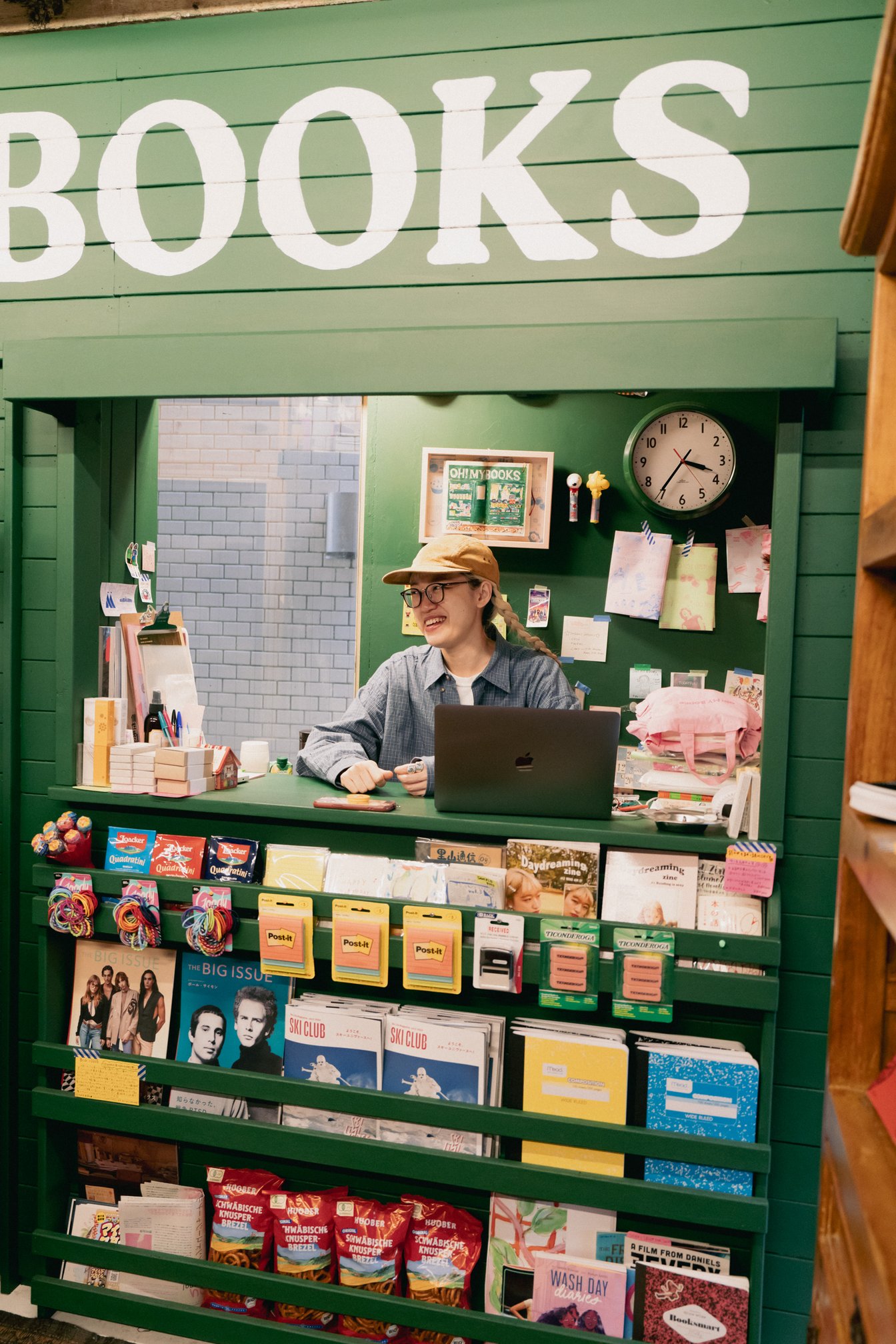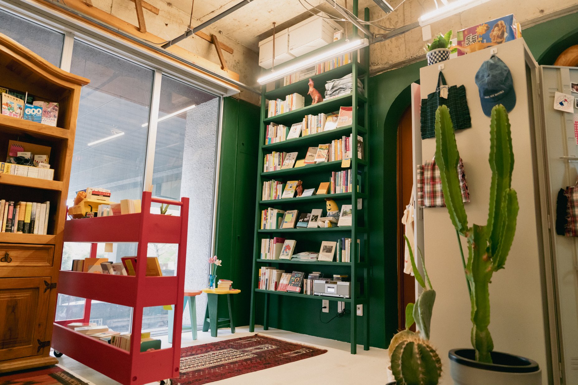 本の街と言えば神保町を思い浮かべるところだが、昨年の秋に幡ヶ谷で少し個性的で、とびっきり可愛らしい本屋がオープンした。本屋といっても、アクセサリー、雑貨、果てはお菓子まで陳列されていて、学園ものの海外ドラマや映画でよく見る細長いロッカーの中には、可愛らしい古着や靴まで並ぶ。緑を基調とした店内も相まって、1990年代頃のアメリカを連想させる。