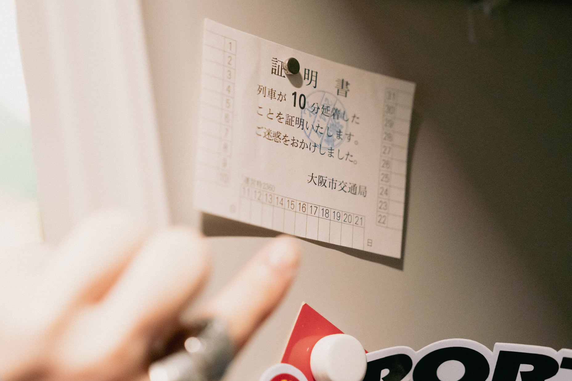 ロッカーの中に貼られている「遅延証明書」の遊び心。