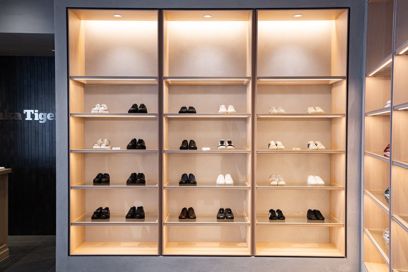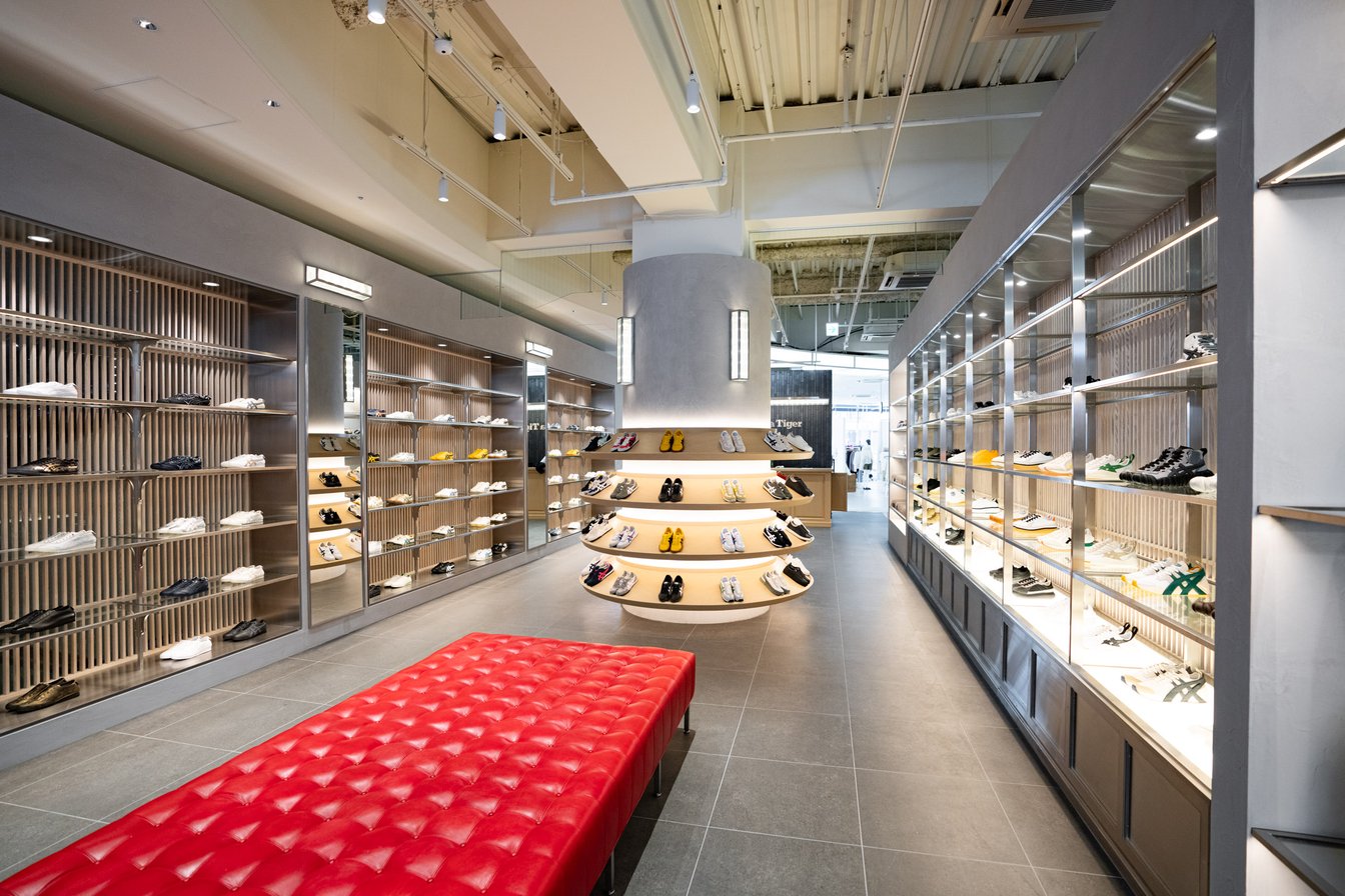 店内ではヘリテージスタイルを展開する「Onitsuka Tiger」をはじめ、コレクションラインの「ONITSUKA TIGER」、レザーアイテムを中心としたフォーマルな「THE ONITSUKA」、フェミニンなスタイルを提案する「OTIGER」といった4つのサブブランドを1フロアに集約。シューズやアパレルといったカテゴリーやスタイルの垣根を超えたラインナップ構成で、ユニセックスの展開が多いのもより多くの人がショッピングを楽しめる嬉しいポイントです。