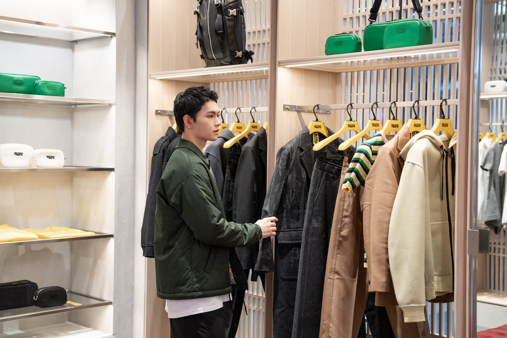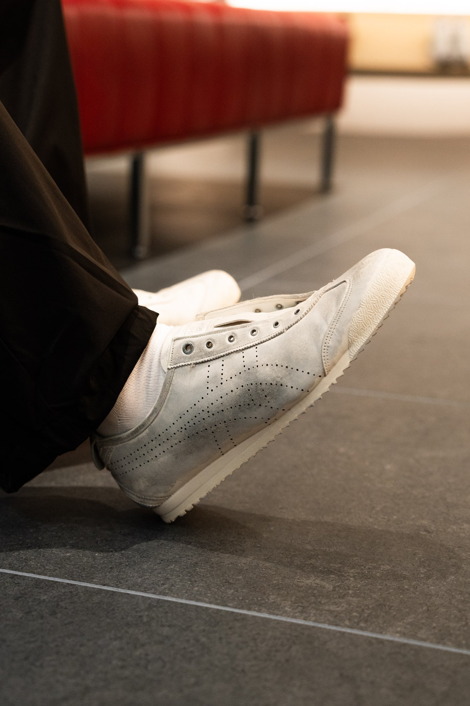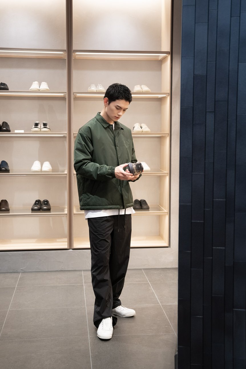 オープン日の8月28日に駆けつけた俳優の佐野勇斗さん。「新作がたくさんあって見ていて楽しかったです」と話し、気になったアイテムとして挙げたのは、当日も足元を飾った「MEXICO 66 SD SLIP-ON」の京都限定シューズ。「加工が施された色味なんですけど、ただシンプルなホワイトではなく特徴的なデザインで気に入りました」とコメント。他にも気になるウェアやシューズを試着して店内を見てまわりました。