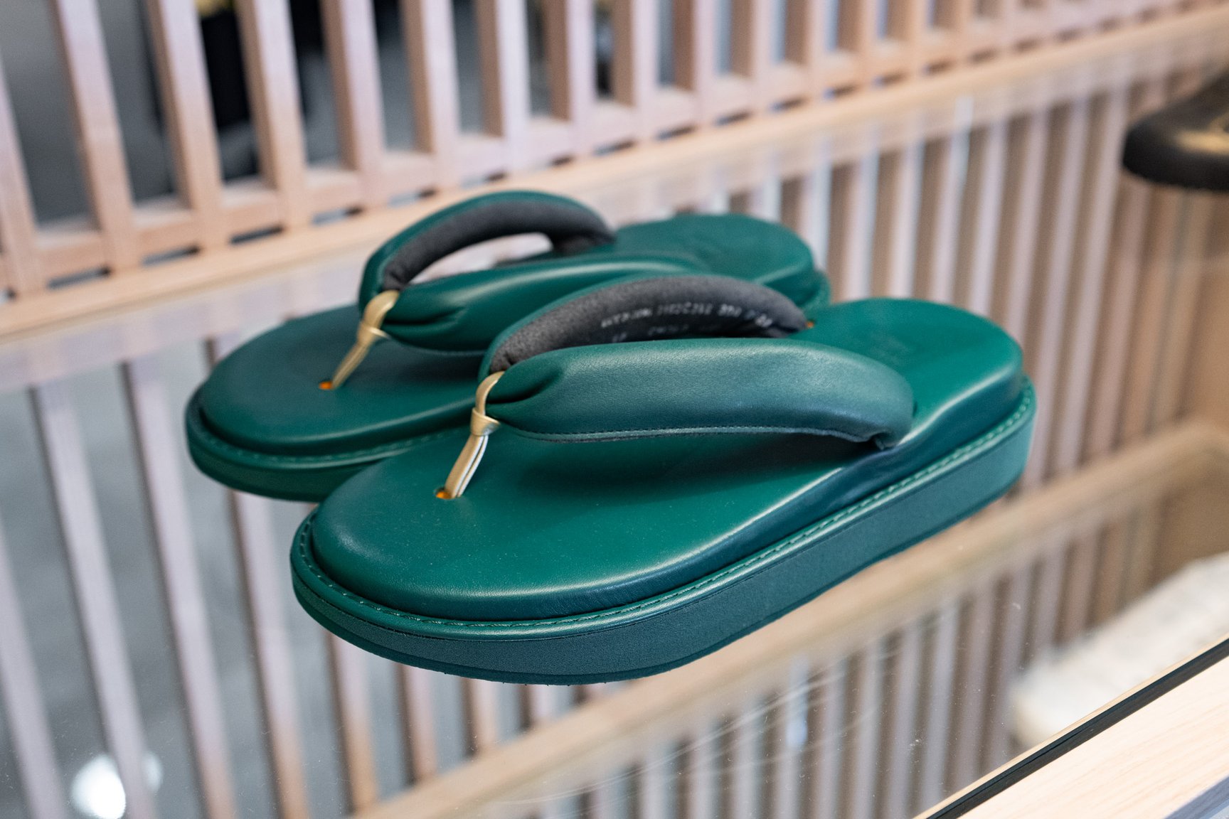 伝統とモダンさが融合した広々とした店内には、アクセントとしても映える真っ赤なソファーが設置され、ゆったりとシューズが試着できます。国内外から多くの観光客が訪れるという土地柄を意識し、京都の街並みに溶け込むストアデザインを心がけたそう。