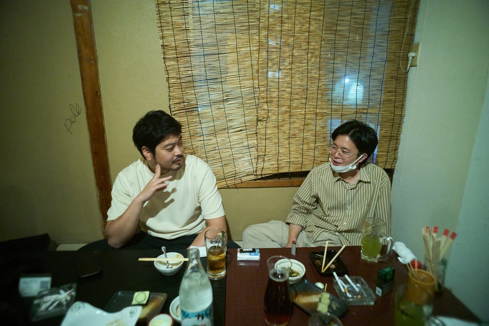 LVMHグランプリが発表された7日後。帰国直後の大月と、展示会後に駆けつけてくれた村上、そして2つのブランドの快進撃を陰で支えた立役者でフォトグラファーのローカルアーティスト“河原”を、3人の行きつけだという三軒茶屋の居酒屋に招集した。普段から、飲み友だちでもあり、切磋琢磨し合うライバルでもある彼らは、この日「LVMHの裏側」「それぞれのクリエイションについて」、果ては「デザインとは何か」を題材に5時間以上も話し(飲み)続けた。リスペクトに裏打ちされた対等な彼らの会話は、称賛と示唆、時に異論までも含んで豊かに展開し、国内ファッションの明るい未来を確かに感じさせた。今回、FASHIONSNAPではほぼノーカットの全3話連載でその模様をお届けする。