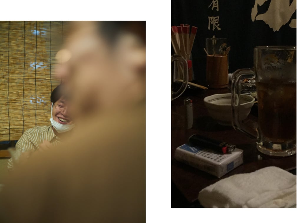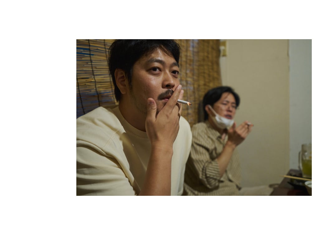 会議室でのかしこまった対談よりも、お酒とタバコを片手に話した方が素直な話を聞けるかもしれない、とまたもや二人のデザイナーと一人のカメラマンを居酒屋に呼び出した。