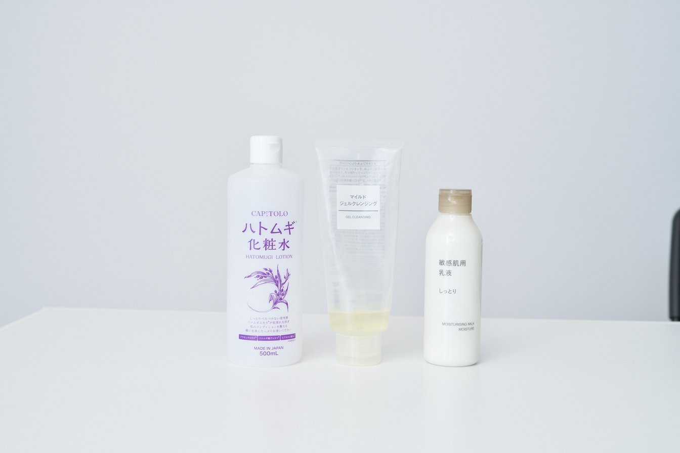 化粧水は「カピートロ(Capitolo)」を、クレンジングと乳液は無印良品のものを使っています。天然由来成分で必要なケアを叶えていく、引き算の姿勢ですね。