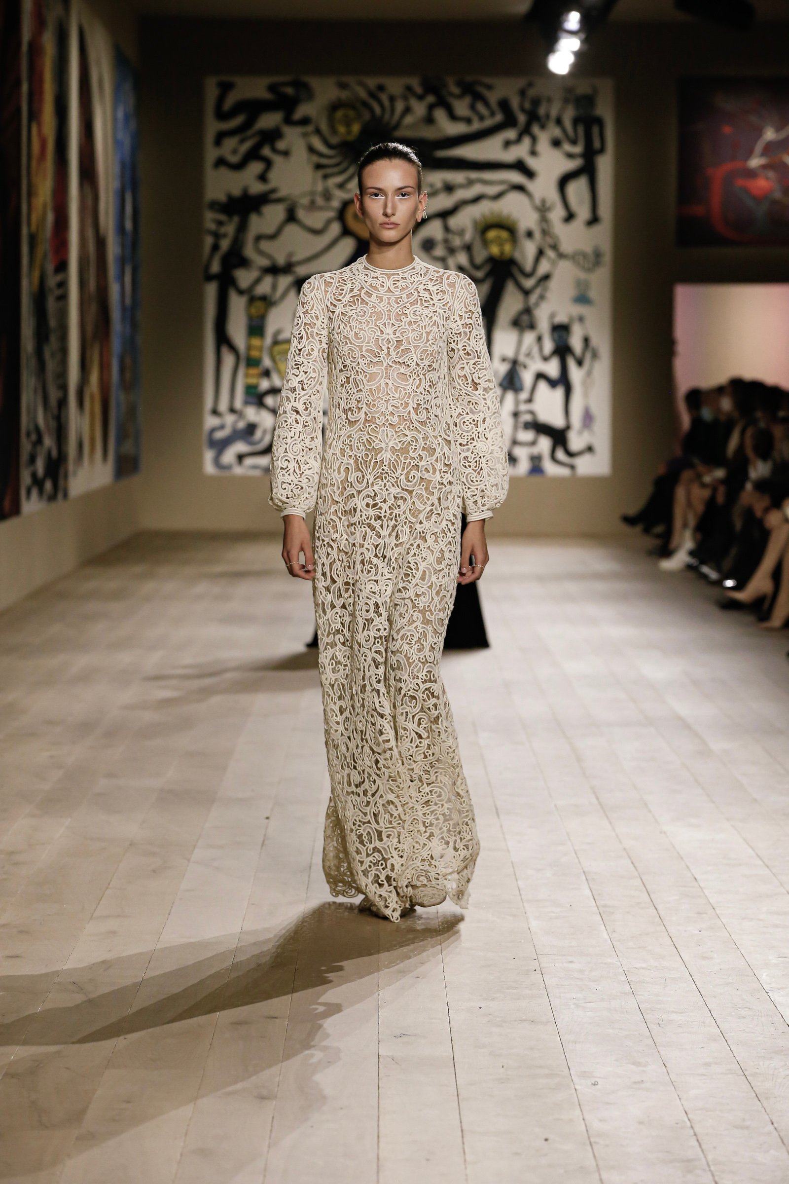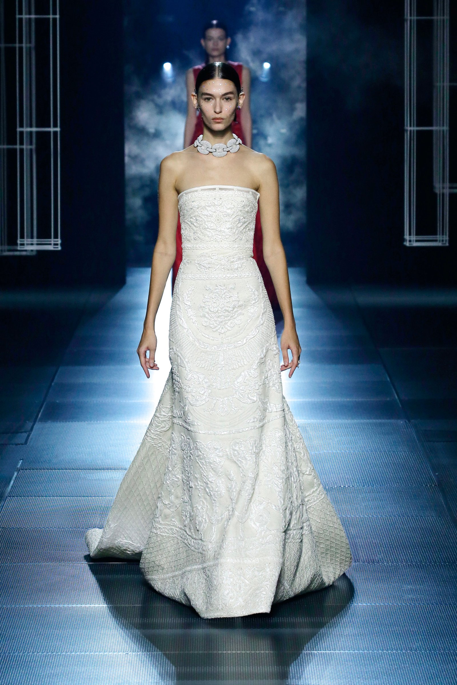 クリエイティブ ディレクター、ピエールパオロ・ピッチヨーリ(Pierpaolo Piccioli)が手がけるヴァレンティノは、「アナトミー オブ クチュール(クチュールの解剖)」をテーマにした新作を発表。あらゆる体型・年齢のモデルを起用し、「美は絶対的なものではない」というメッセージを発信した。マリアカルラ・ボスコーノ(Mariacarla Boscono)やクリステン・マクメナミー(Kristen McMenamy)といったベテランモデルの貫禄も特筆もの。多様性に富んだキャスティングにより、モデルの個性とシルエットをメゾンの巧みな技術によって際立たせ、これまでのクチュールの慣習やプロセスに一石を投じた。