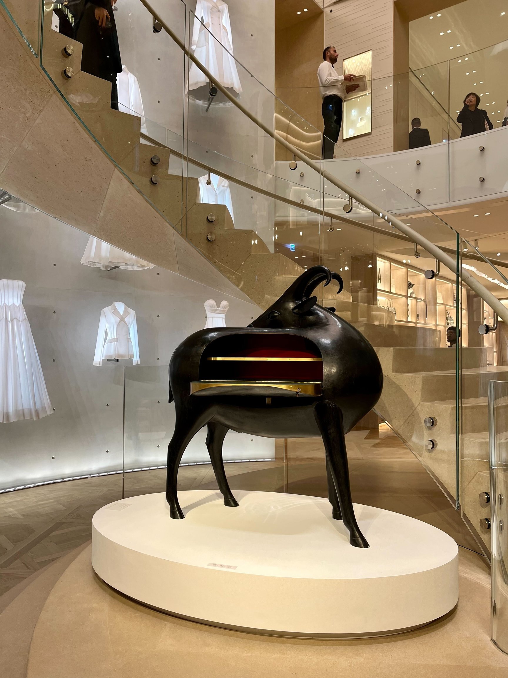 初日夜は「ディオール(DIOR)」の本店「30 モンテーニュ」でのカクテルイベントへ。広い店内にラランヌ夫妻の彫刻作品が点在していて、トレジャーハントを楽しんでいる気分になります。