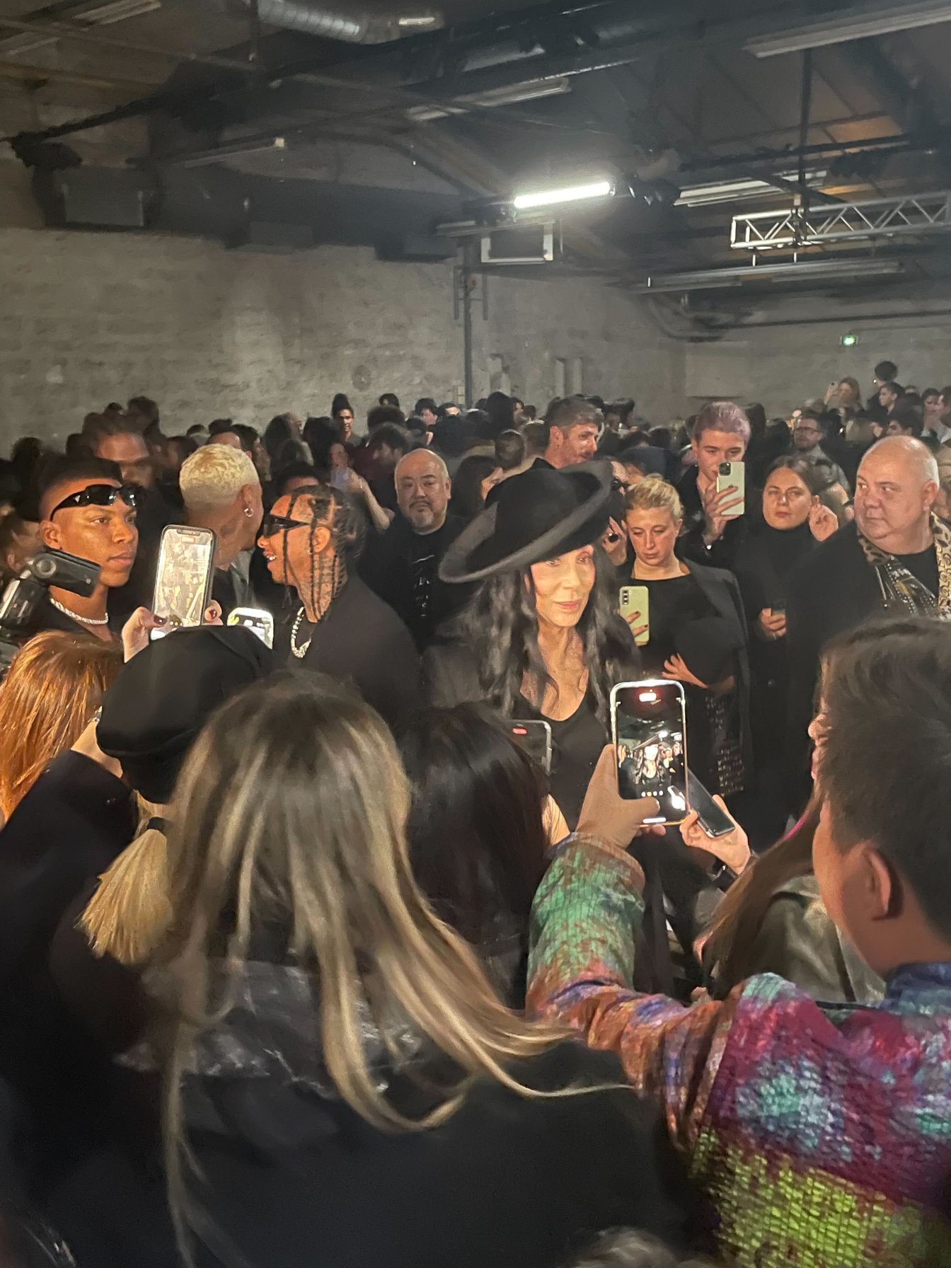 6日目の最後は「アン ドゥムルメステール(ANN DEMEULEMEESTER)」のショー。時間を過ぎてもなかなか始まらないなと思っていたら、最後に来場したのはシェール(Cher)でした。席に着くと場内からは拍手が。御歳76才、永遠のディーバが輝いて見えました。