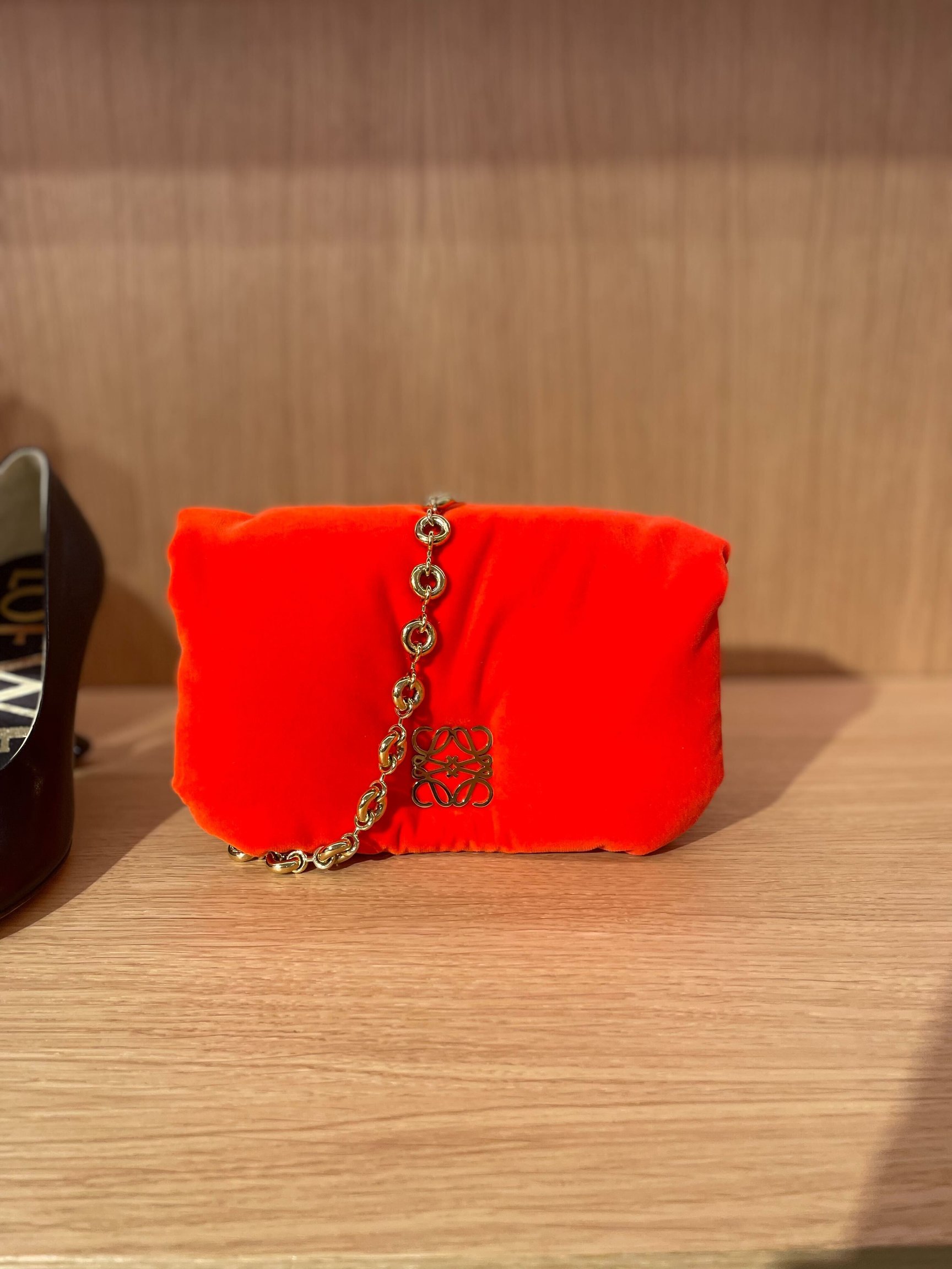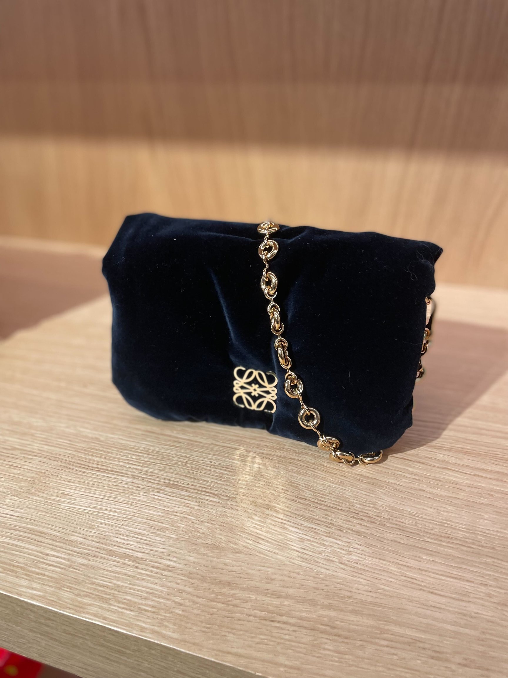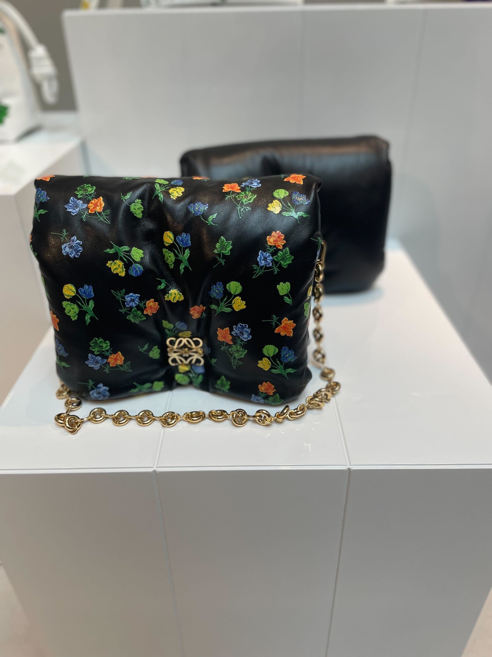 ランウェイに登場したばかりの「ロエベ(LOEWE)」のアイテムをRe-see(展示会)でチェック。今シーズンの注目は、横長で両端のノットがポイントの「パセオバッグ」。レザーにタックを寄せた立体感が、まるで餃子のようです。大中小と3種のサイズ展開で、新たなアイコンバッグとなりそう。