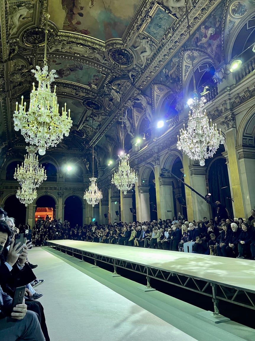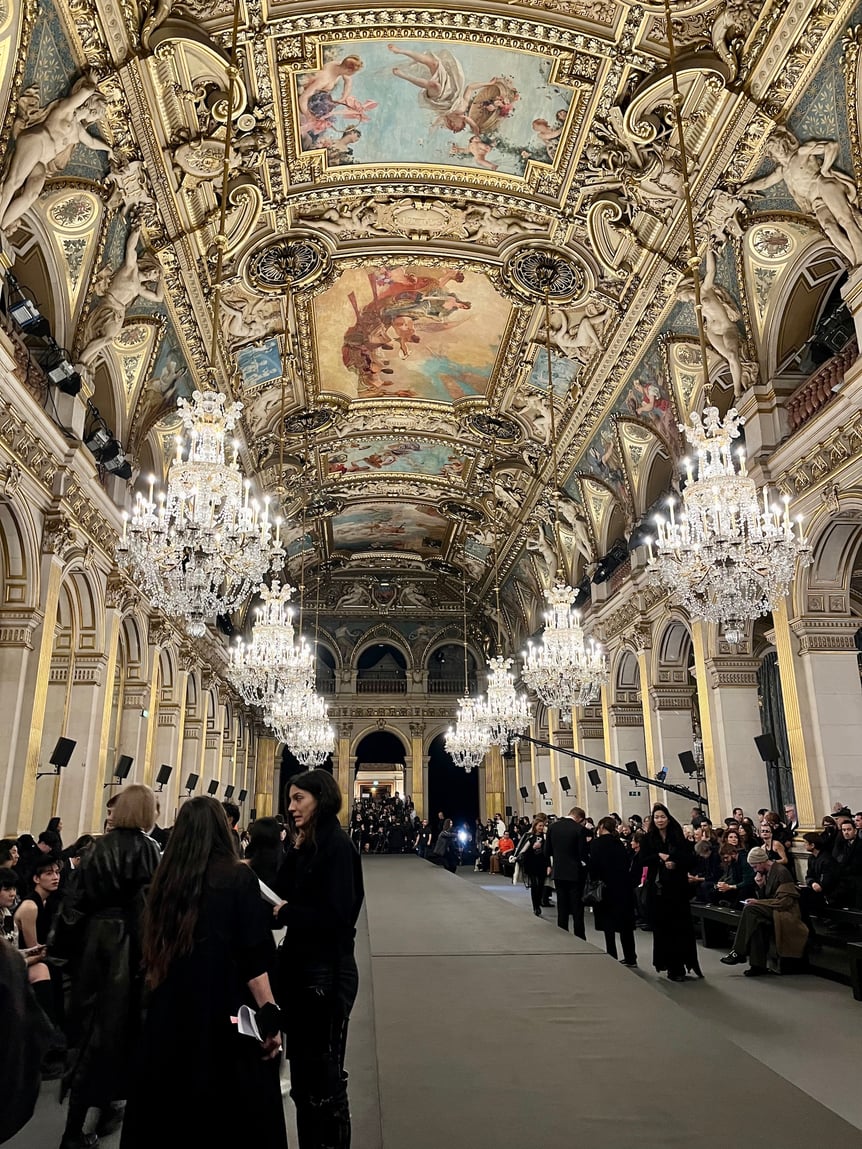 歴史的建造物や観光スポット、時には公共の道路や庭園など、様々な場所がショー会場となるのがパリの素晴らしいところ。中でも美しさの際立つ場所のひとつがパリ市庁舎(オテル・ド・ヴィル)です。1357年に建てられ(パリ・コミューンの際に一度焼失し、現在の建物は19世紀に再建されたもの)、その歴史は600年以上。ここで「ヨウジヤマモト(Yohji Yamamoto)」のショーが開催されました。