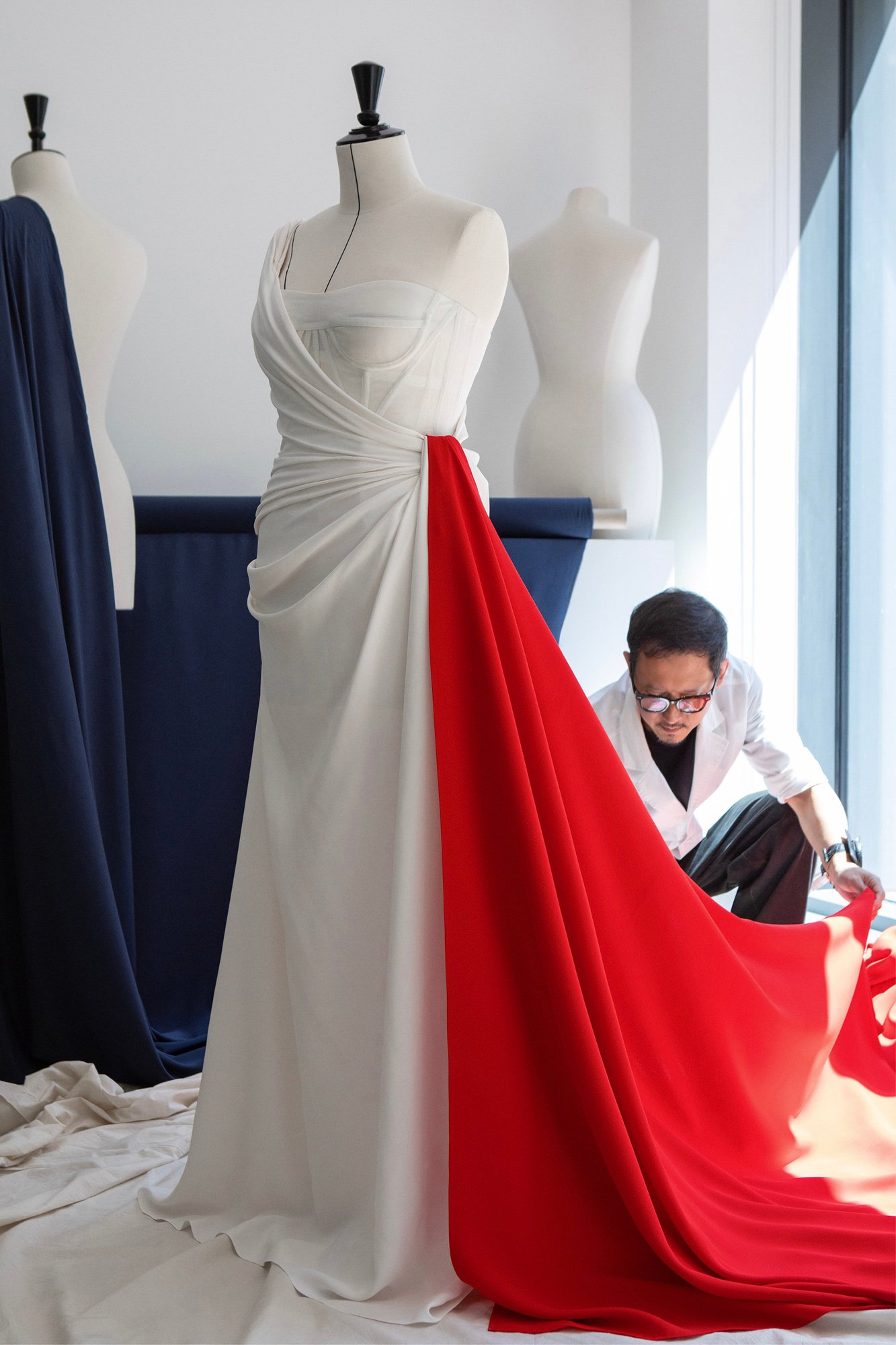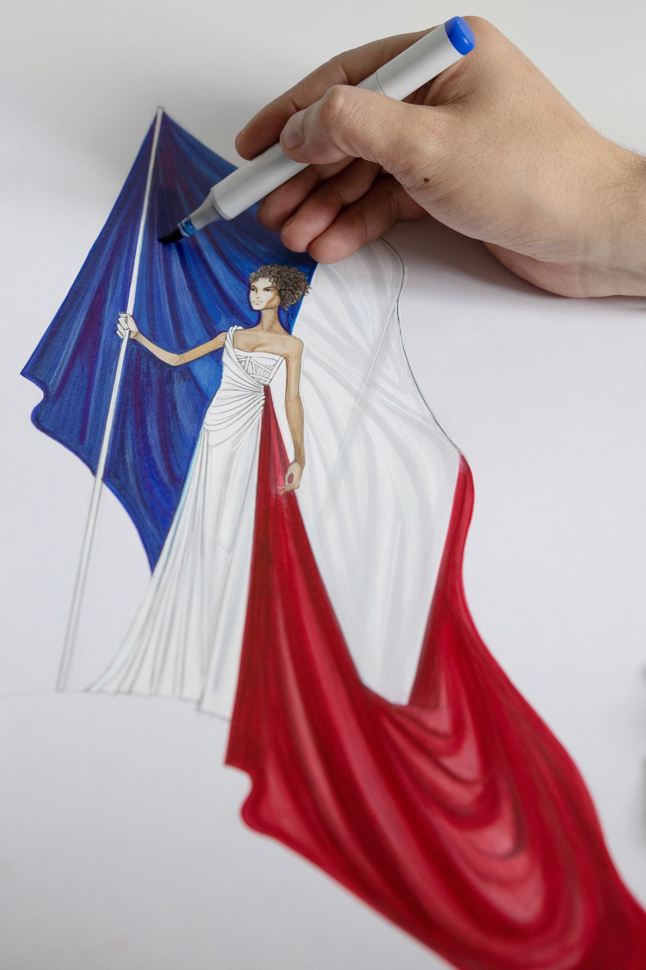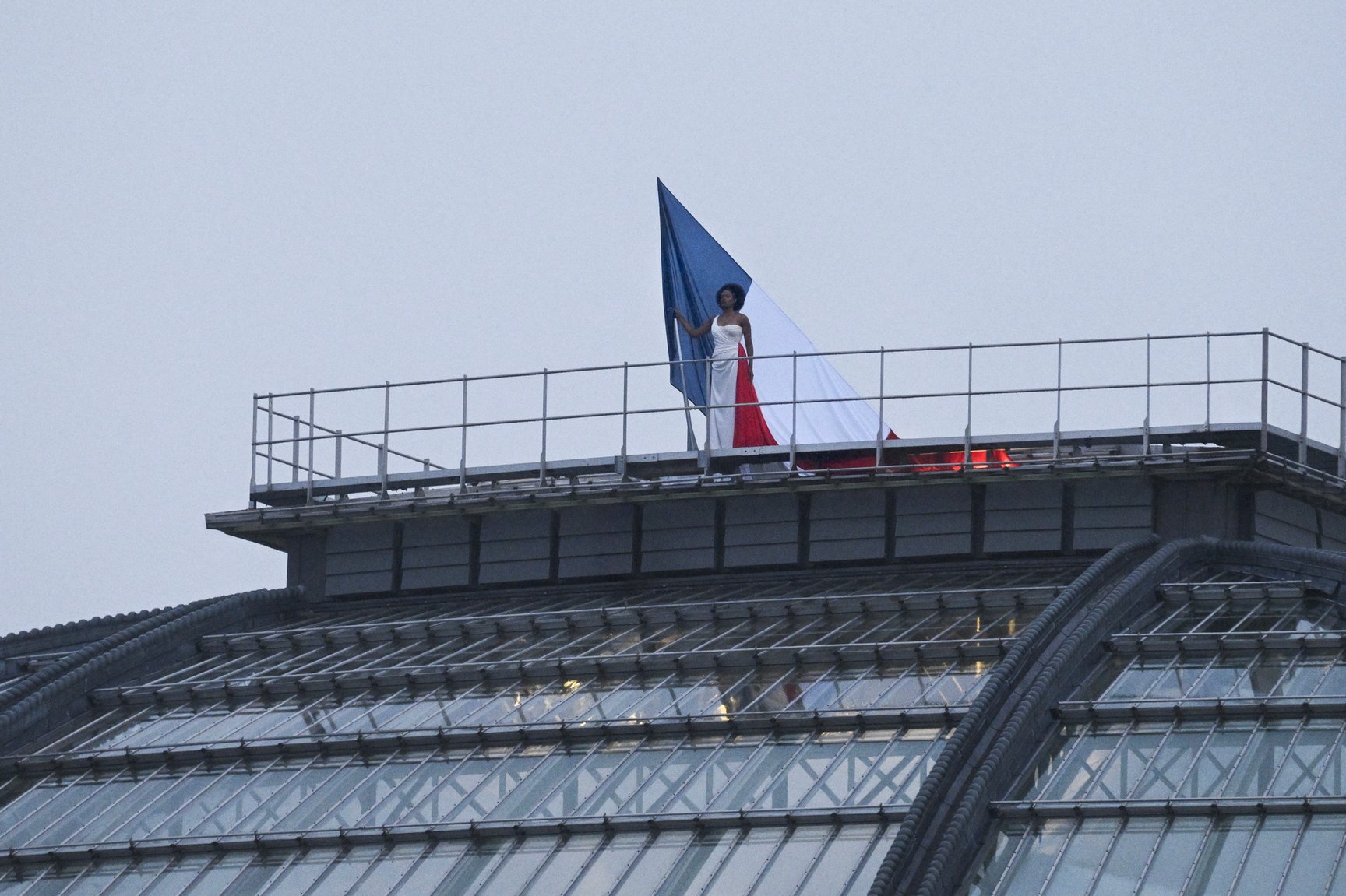 フランス国歌「ラ・マルセイエーズ(La Marseillaise)」を歌唱したメゾソプラノ歌手のアクセル・サン・シレル(Axelle Saint-Cirel)の着用ドレスも、ディオールのオートクチュール。8メートルを超える白いシルクのガウンを着用しました。