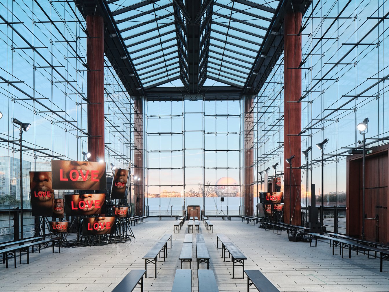 「ステラ マッカートニー」2024年ウィンターコレクションは、母なる地球からのメッセージを伝えるもの。ショーのオープニングには、会場に置かれたスクリーンに女性たちの唇が映し出され、気候変動についてのマニフェストが朗読された。これは女優のオリヴィア・コルマン(Olivia Colman)とヘレン・ミレン(Helen Mirren)が読み上げ、環境活動家たちがリップシンクしたもの。今シーズンもブランドの信念を貫き、コレクションの9割は地球に優しい素材を用いて制作したという。