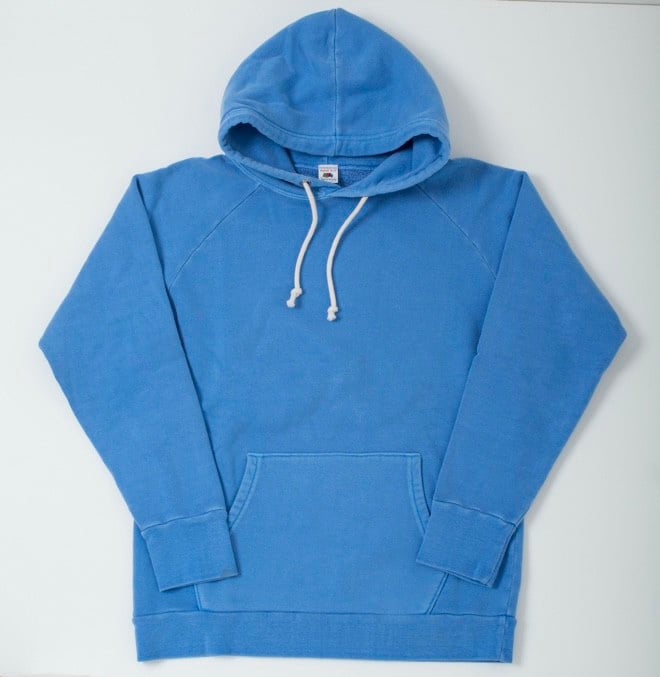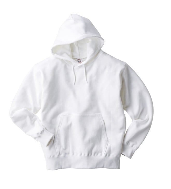 最大の特徴は丈夫なヘビーウェイトの生地で、フードがしっかり立つので1枚でも様になります。定番のクロスニットヘビーウェイトプルオーバーフード(CROSS-KNIT HEAVYWEIGHT PULLOVER HOODED)はコットン90%ポリエステル10%の12オンスで、カラーバリエーションは10種類以上。サイズはSから5XLまで幅広く揃えています。