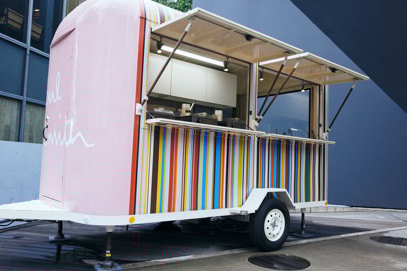 今回のイベントでは、そんなシグネチャーストライプの過去と現在を紐解く、様々なインスタレーションが登場。シグネチャーストライプのアクセントを効かせた外壁のデザインと、その前に設置されたシグネチャーストライプのトレーラーが目を引く会場には、デザイナー本人が登場する動画やアーカイヴピースの展示に加え、気球の旅を体験できるプロジェクションマッピングの部屋なども設置された。オープニングに合わせてポールも来日し、ゲストたちを笑顔で出迎えた。