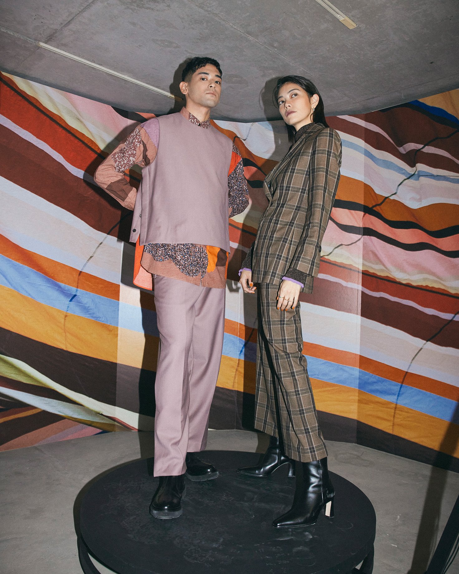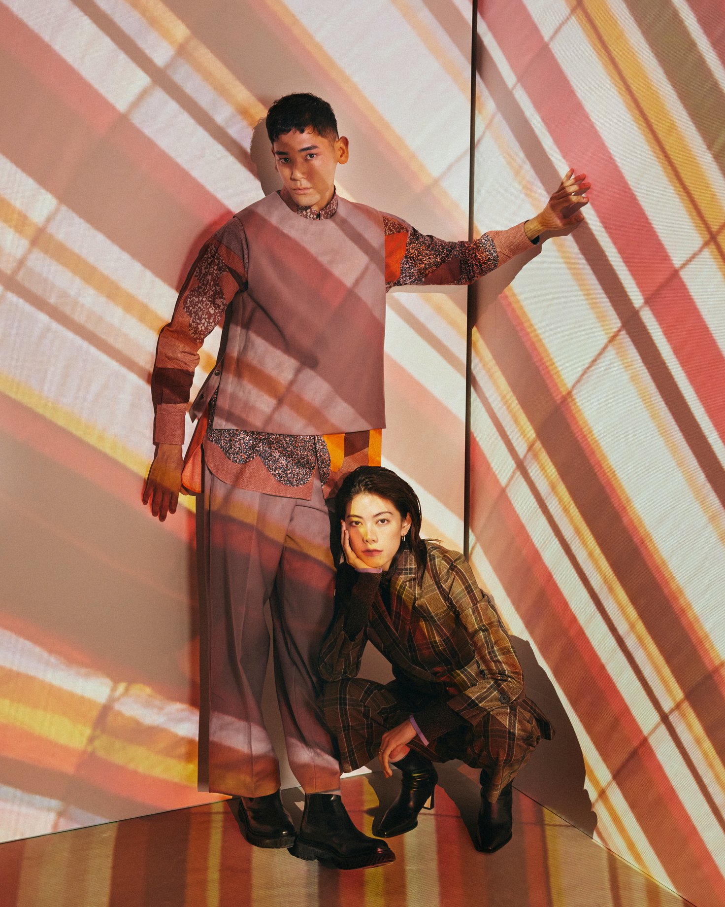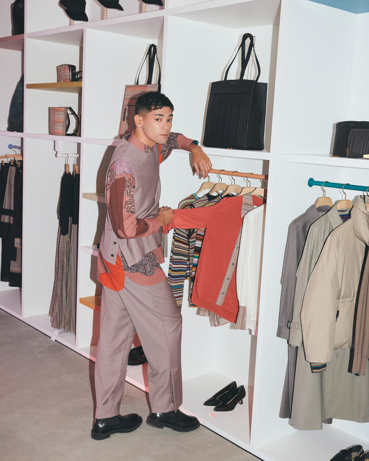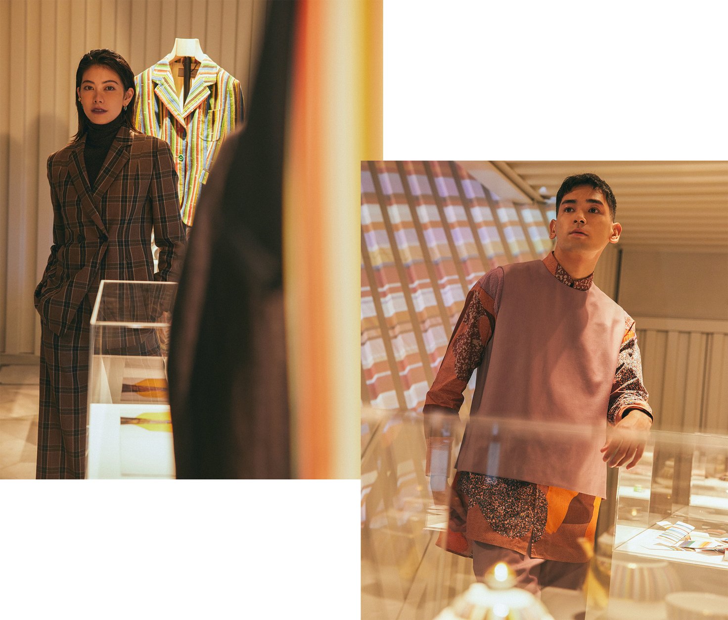 展示品に見入っていた2人は「1997年に発表されたルックは、今見ても新鮮。ポール・スミスのヴィンテージを掘り返したくなりました(森星)」「ポールさんが駆け出しの頃、色糸を使って手作業で色々なストライプを作っていた、と明かしていたのが印象的でしたね(UTA)」と語る。