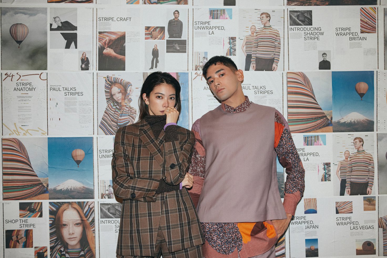 「ポール・スミス(Paul Smith)」が東京・原宿のBANK GALLERY(バンクギャラリー)で、ブランドを象徴する「シグネチャーストライプ」にフォーカスしたポップアップイベント「ポール・スミス ストライプを紐解く ー STRIPE, UNFOLDED」を10月15日まで開催する。プレビューにはモデルの森星とUTAが来場。2018年のポール・スミスのショーに招待された際に初めて出会ったという2人だが、今や同じ事務所に所属する仲間同士。2人にとってポールは"キューピッド"的存在なのだという。