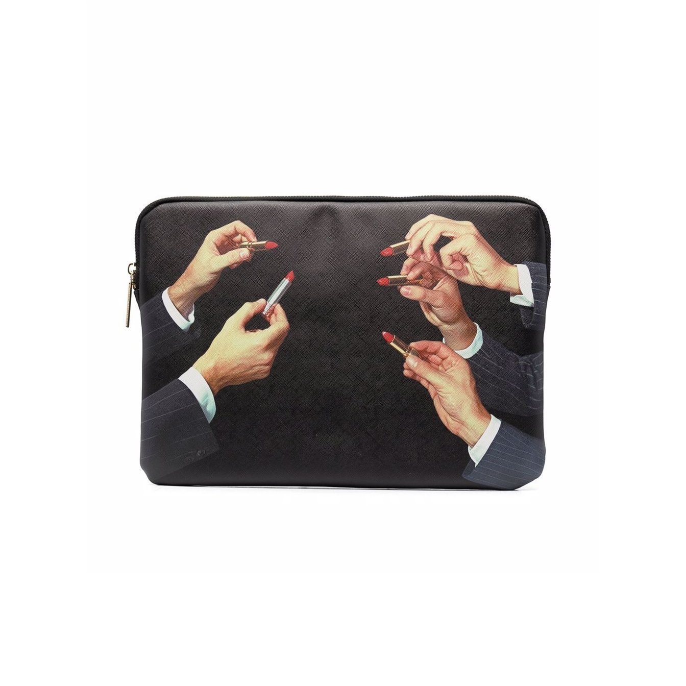 アート作品をそのまま持ち運んでいるかのような、おしゃれなPCケースは「セレッティ(Seletti)」のアイテム。イタリアのシュールで独特なアート写真を発行しているマガジン「トイレットペーパー(Toiletpaper)」と協業した、代表的なリップを持ったグラフィックをパッチ。サイズは W:34cm×H:25cm×D:3cm(約)。