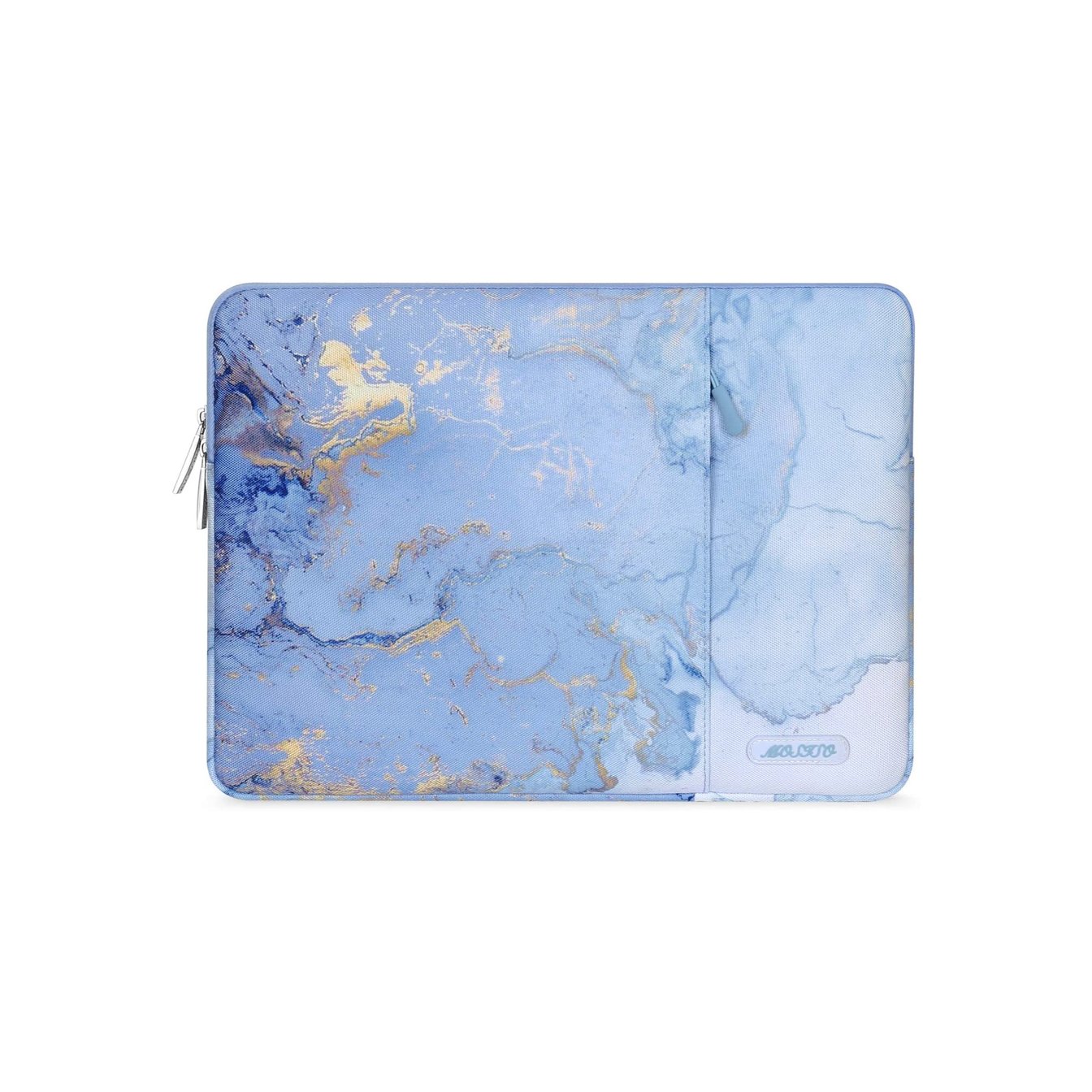 大理石の様なマーブル柄が目を引くPCケース。ケース外についているポケットには、電源アダプターやマウス、イヤホンなどを保管するのに便利です。