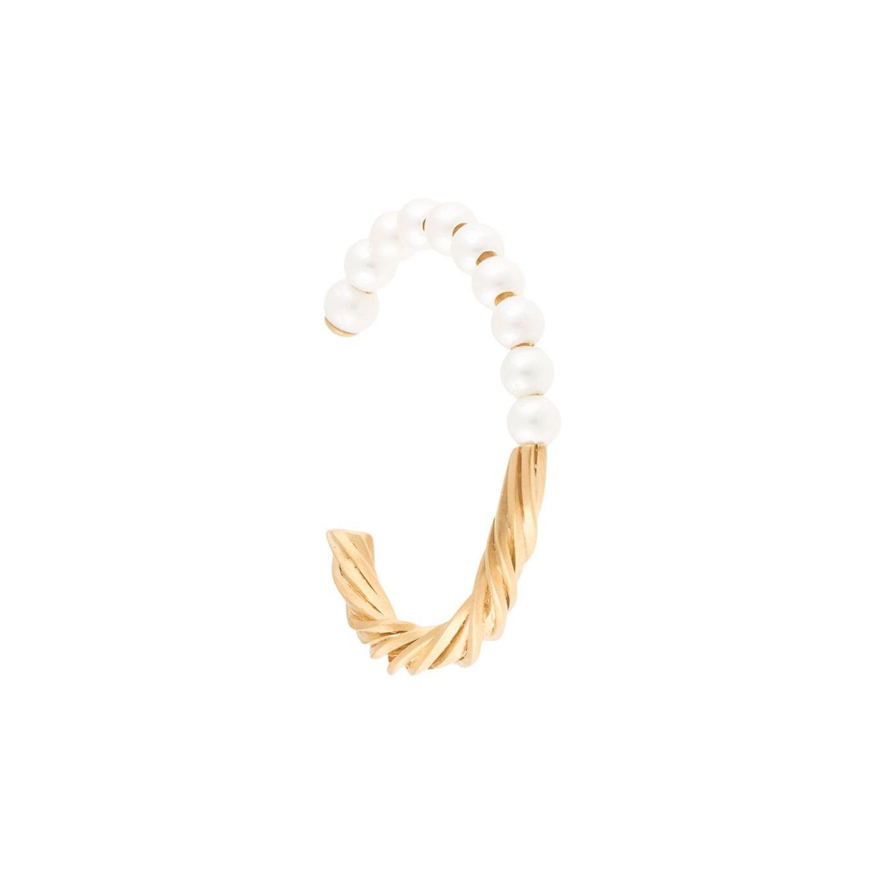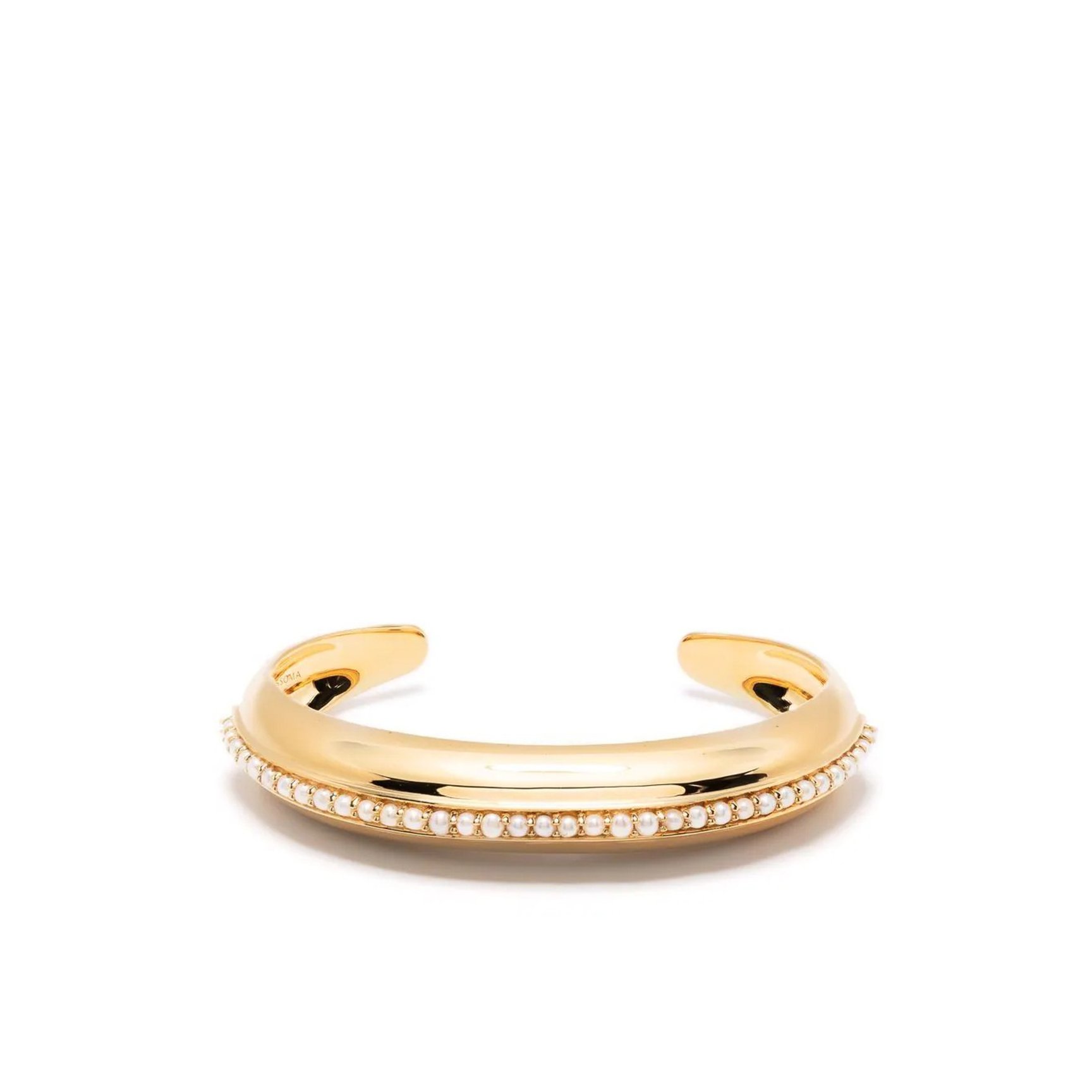 パワフルなゴールドのボディに、ミニサイズのパールが均等に並んだ「ミッソマ(Missoma)」のカフブレスレット。ハンサムな表情とパールの優雅な質感がミックスされた、凛としたムードが魅力的。