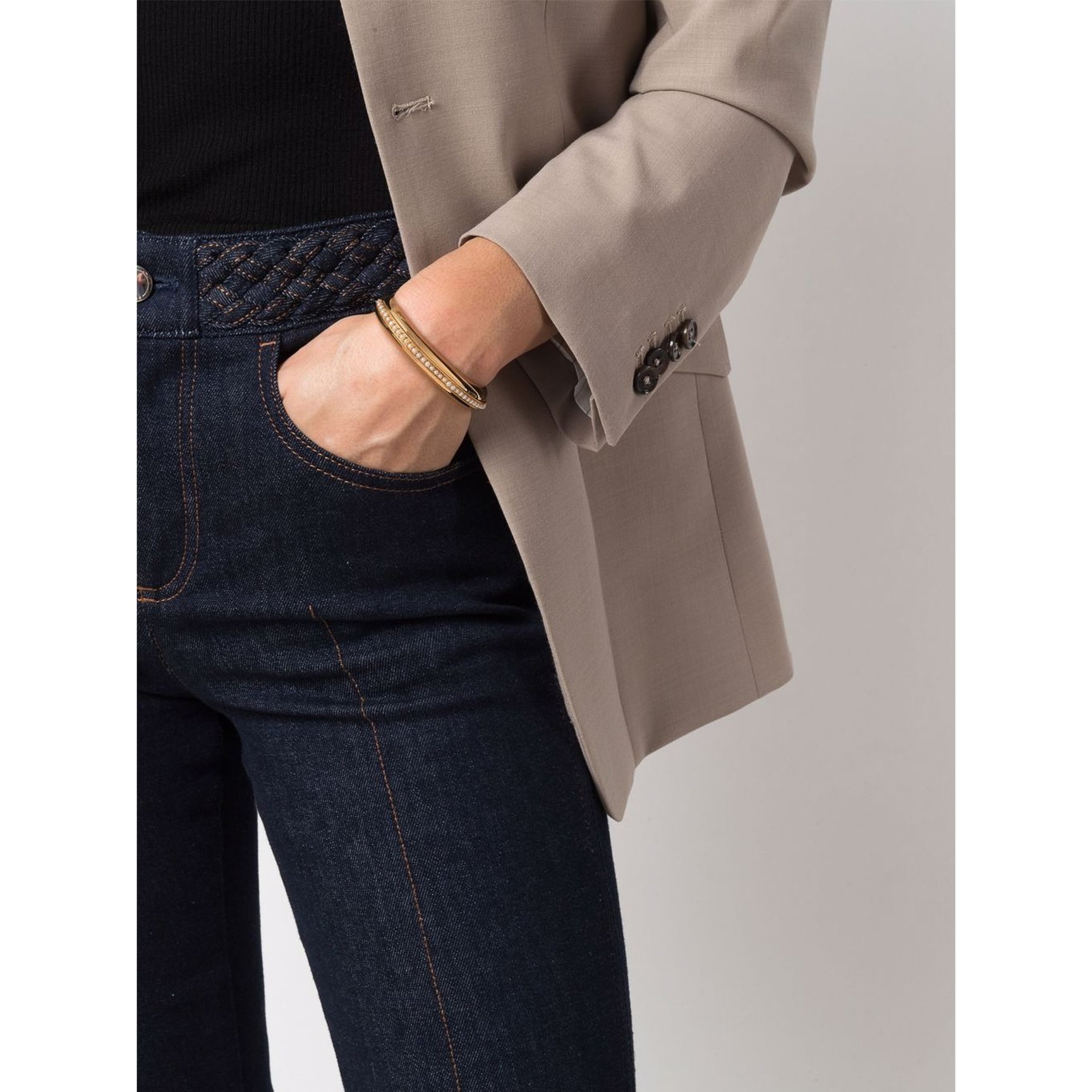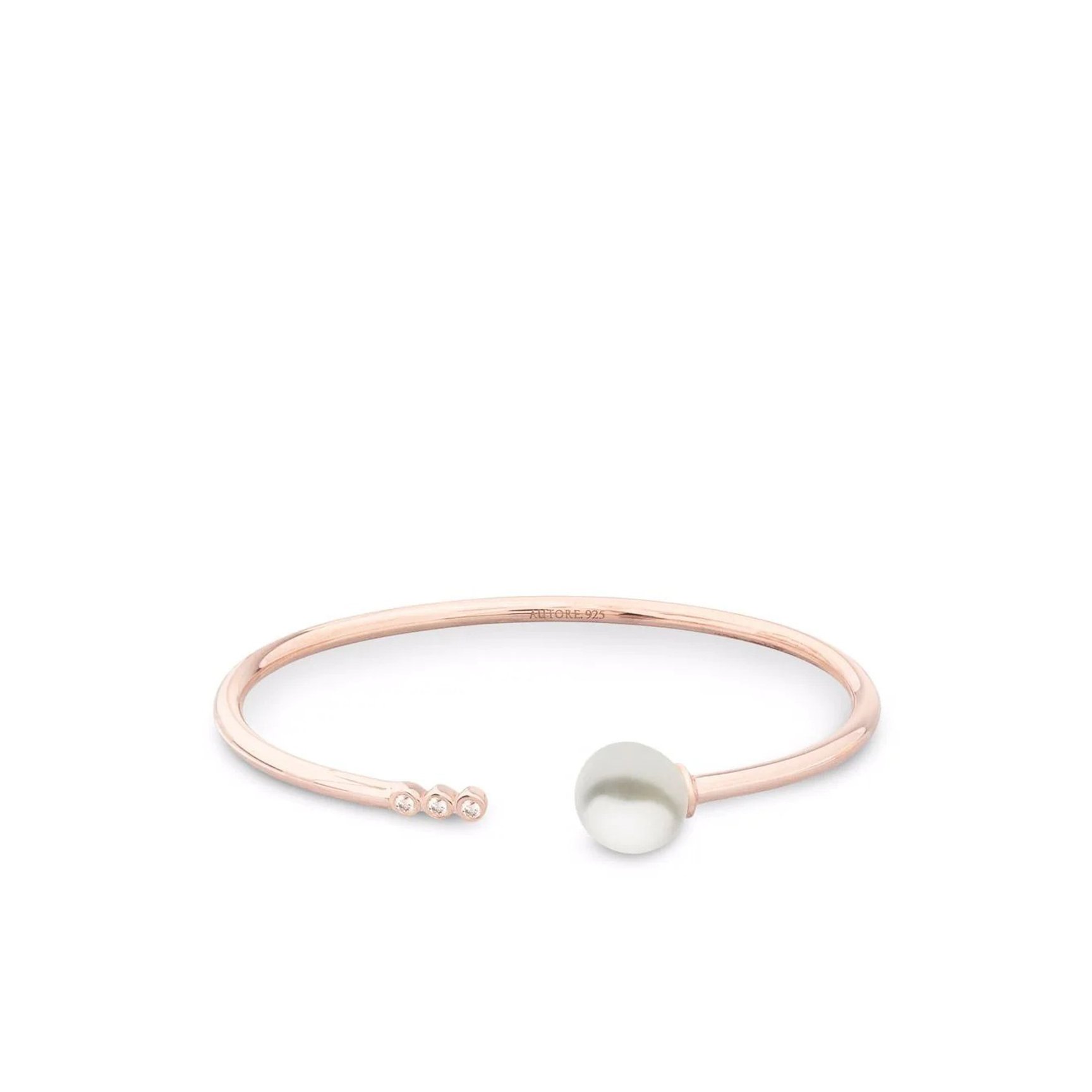 上品な色味と大きなサイズ感が特徴的な、南洋パールのモダンなジュエリーをリリースしている「オートレモーダ(AUTORE MODA)」。繊細なラインのローズゴールドに、美しいパールが添えられたカフブレスレットは可憐さと洗練さを両立。
