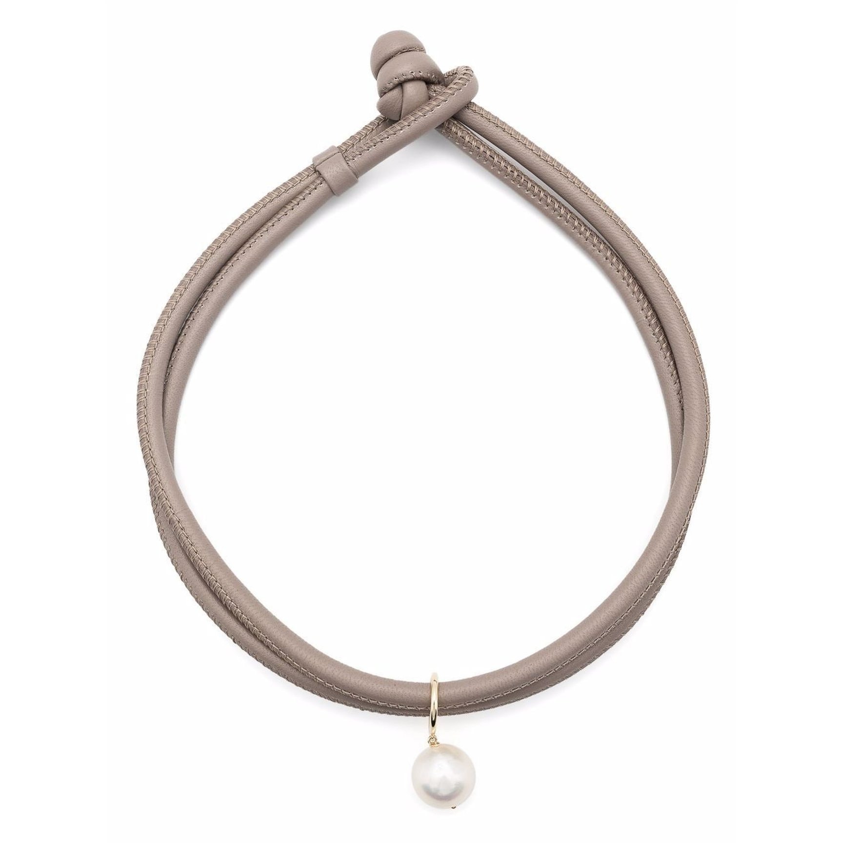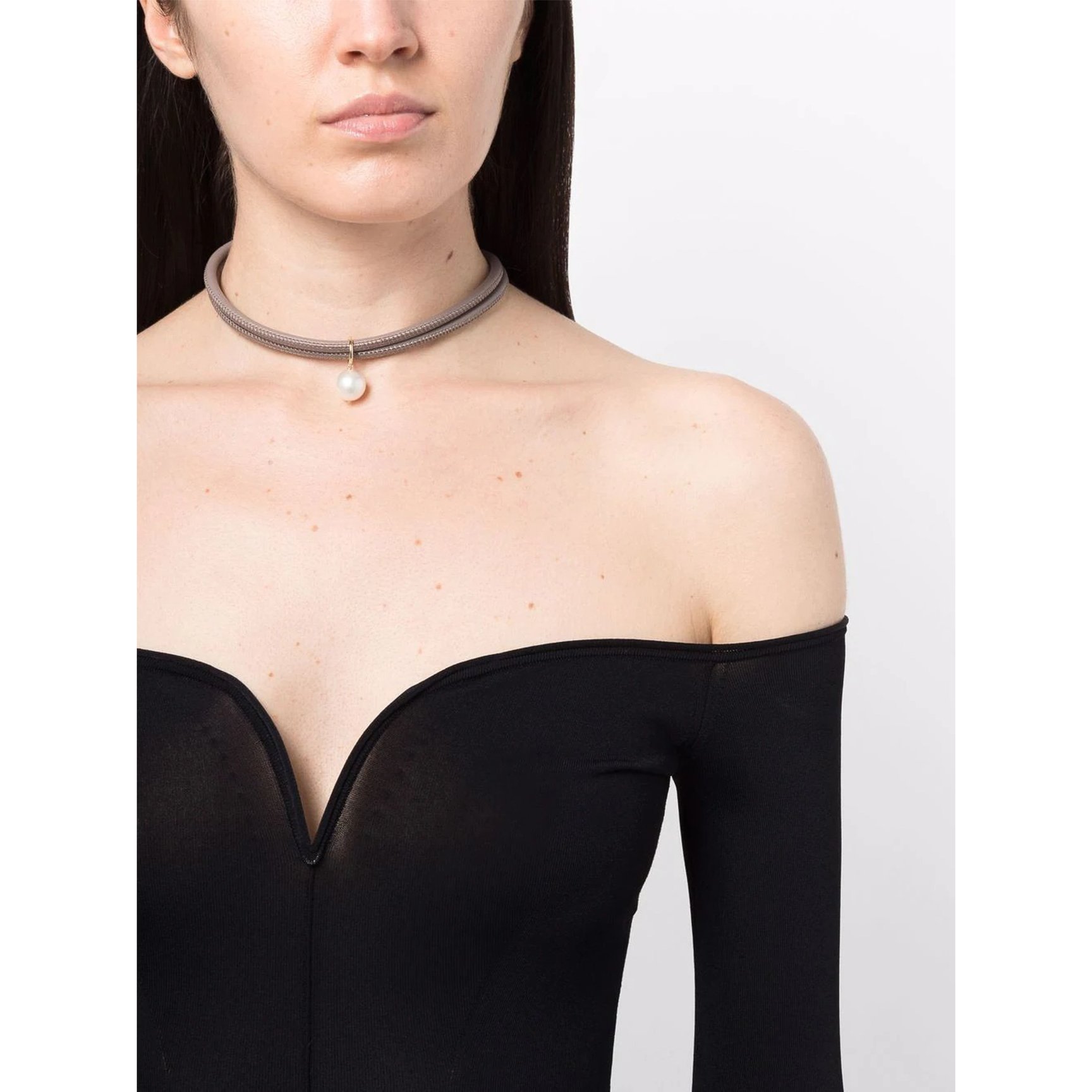 くすみカラーのレザーと、美しく光るパールのコントラストに心奪われる「ミズキ(MIZUKI)」のネックレス。チェーンとは一味違う組み合わせに、新しいジュエリーの楽しみ方を発見できそうな予感。