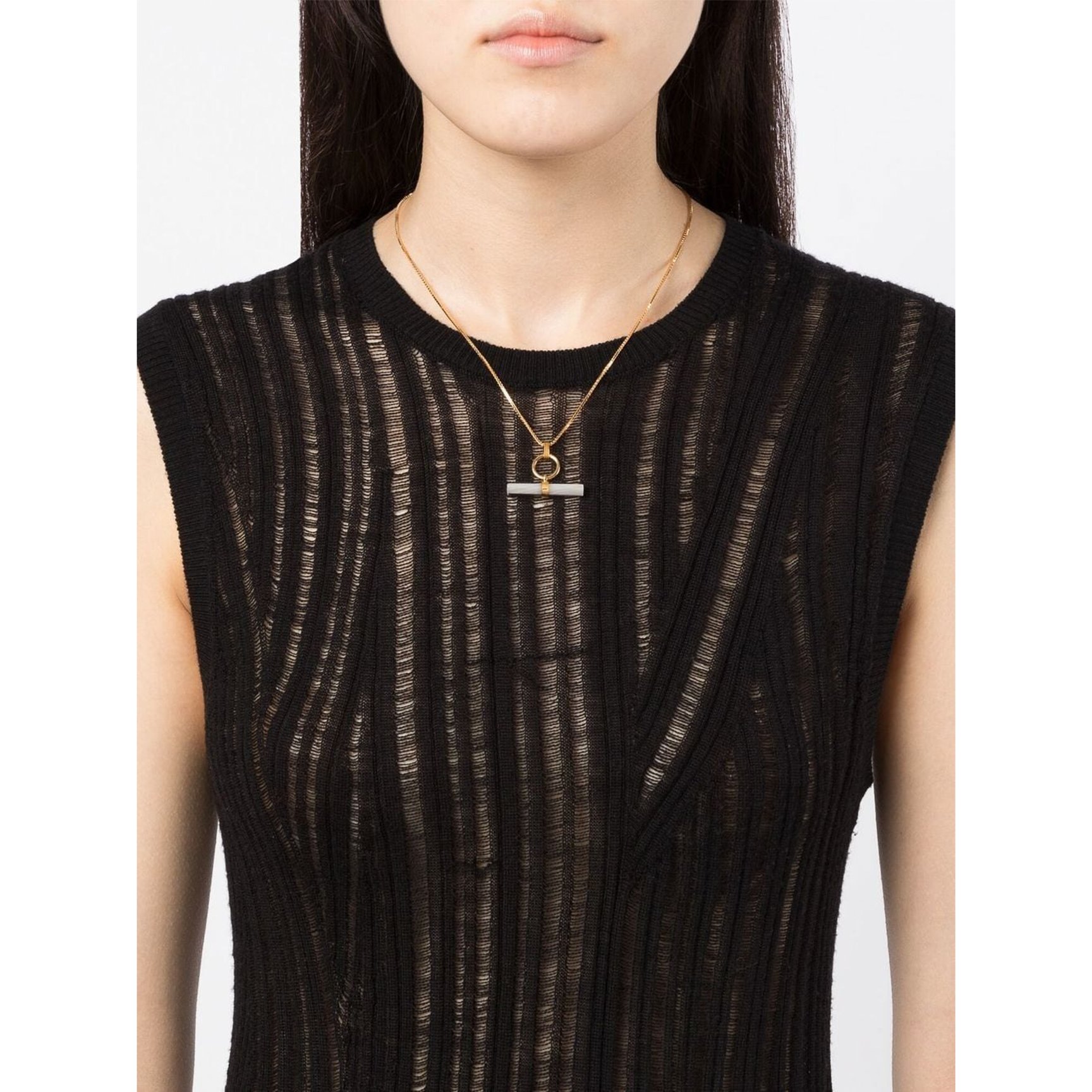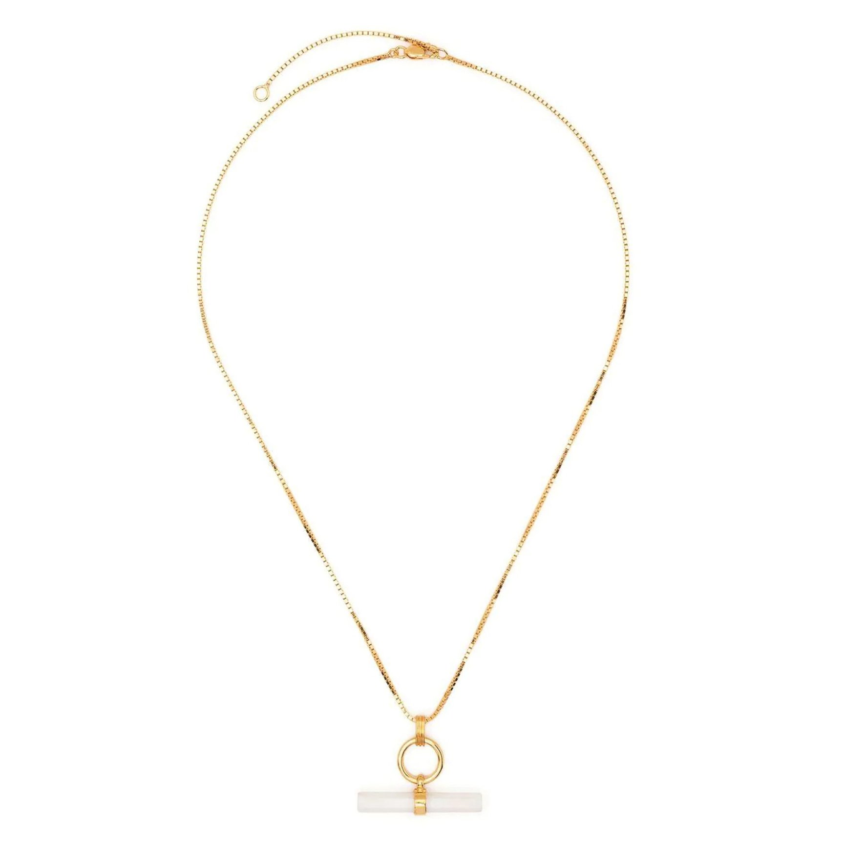変化球のパールジュエリーをお探しなら、「レイチェル ジャクソン(RACHEL JACKSON)」のネックレスがおすすめ。マザーオブパールのバーをセットしたデザインは、何気ないデイリースタイルにもオフィスにもぴったり。