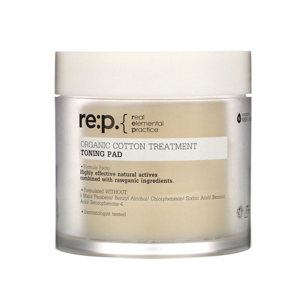毎日気にせずたっぷり使える90枚入りの大容量が魅力の「アールイーピー(re:p)」の拭き取りパッドです。オーガニックコットン製のパッドは肌当たりも優しい使い心地。カレンデュラ、カモミール、ラベンダーから抽出されたハーブウォーターがお肌のバランスを保ち、ゆらぎから守ってくれるでしょう。