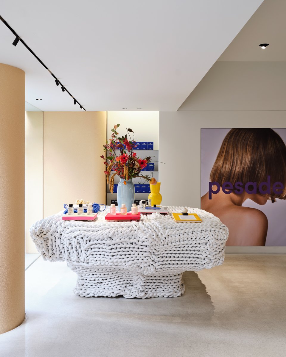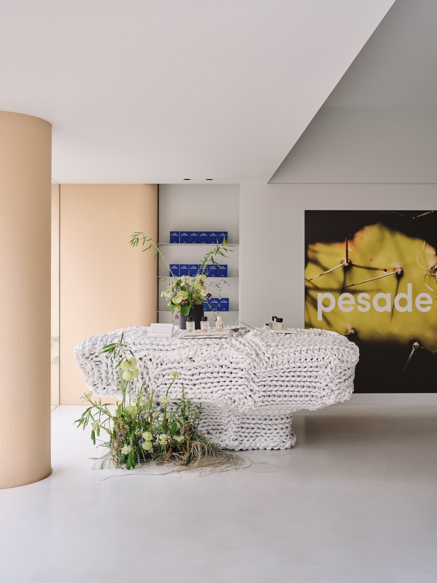 ローンチから1年後に最初のフラッグシップストアを漢南にオープンしたことが最も重要な転機でした。私たちは資本が少なくマーケティングもあまりできなかったので、オフラインでの展開こそがブランドをお客さまに紹介し、コミュニケーションを取る唯一の方法だと考えていました。店舗設計は、以前の職業的強みを活かし、すべてを自分たちで行いました。ありきたりなインテリアやグッズのようなものを作りたくなかったので、私がインスピレーションを受けたフォトアルバム付きのフレグランススタンドを使用したり、長年の友人であるアーティストのイ・グァンホと協力して店内に大きなテーブルを作ったり、さまざまなことに挑戦しました。それから、マラケシュと日本にインスパイアされた植物も。これらの要素がペサドゥの雰囲気を作る上で重要な役割を果たし、これに興味を持ったお客さまを通じて、メディアや海外にも知られるようになりました。